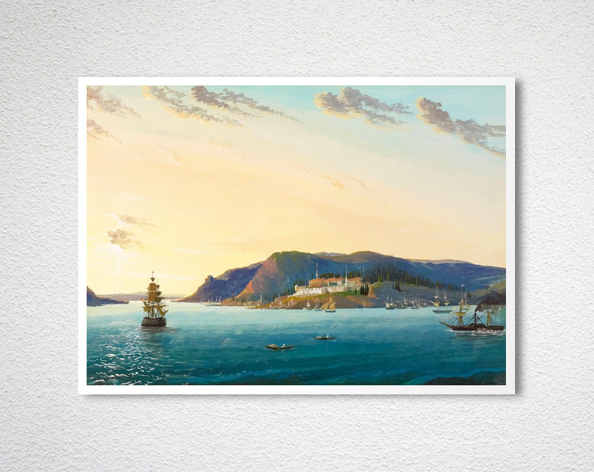 View of the Bosphorus, Constantinople by Carlo Bossoli Fine Art Print - Poster Paper or Canvas Print