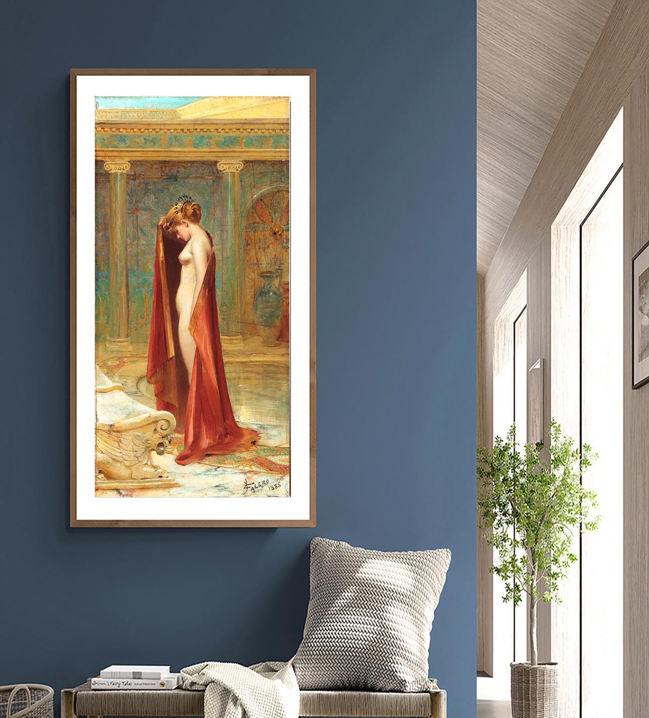 Luis Ricardo Falero’s A Beauty is a stunning example of style, which blends fantasy, mythology, and sensuality. Known for his mastery of the female form, Falero often depicted enchanting women, surrounded by mystical elements.