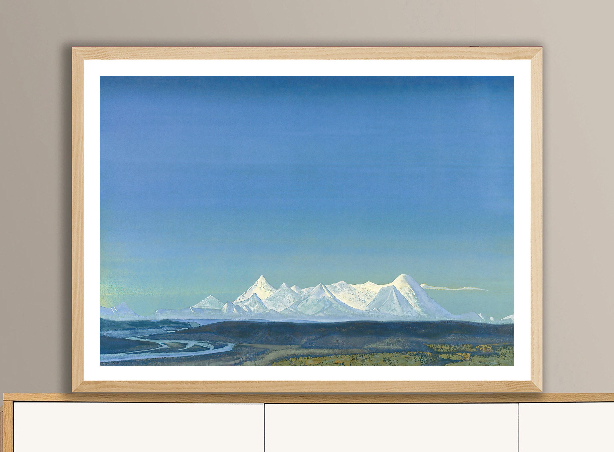 Printed on high quality paper, cotton canvas or adhesive sticker paper. A high quality reproduction of painting by Nicholas Roerich. Professional packaging for safe shipping. Natural white border will be added to the image for mounting and framing. Frame is not included.