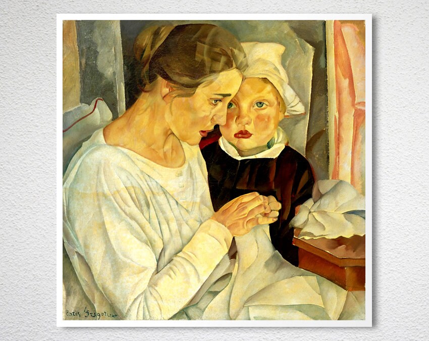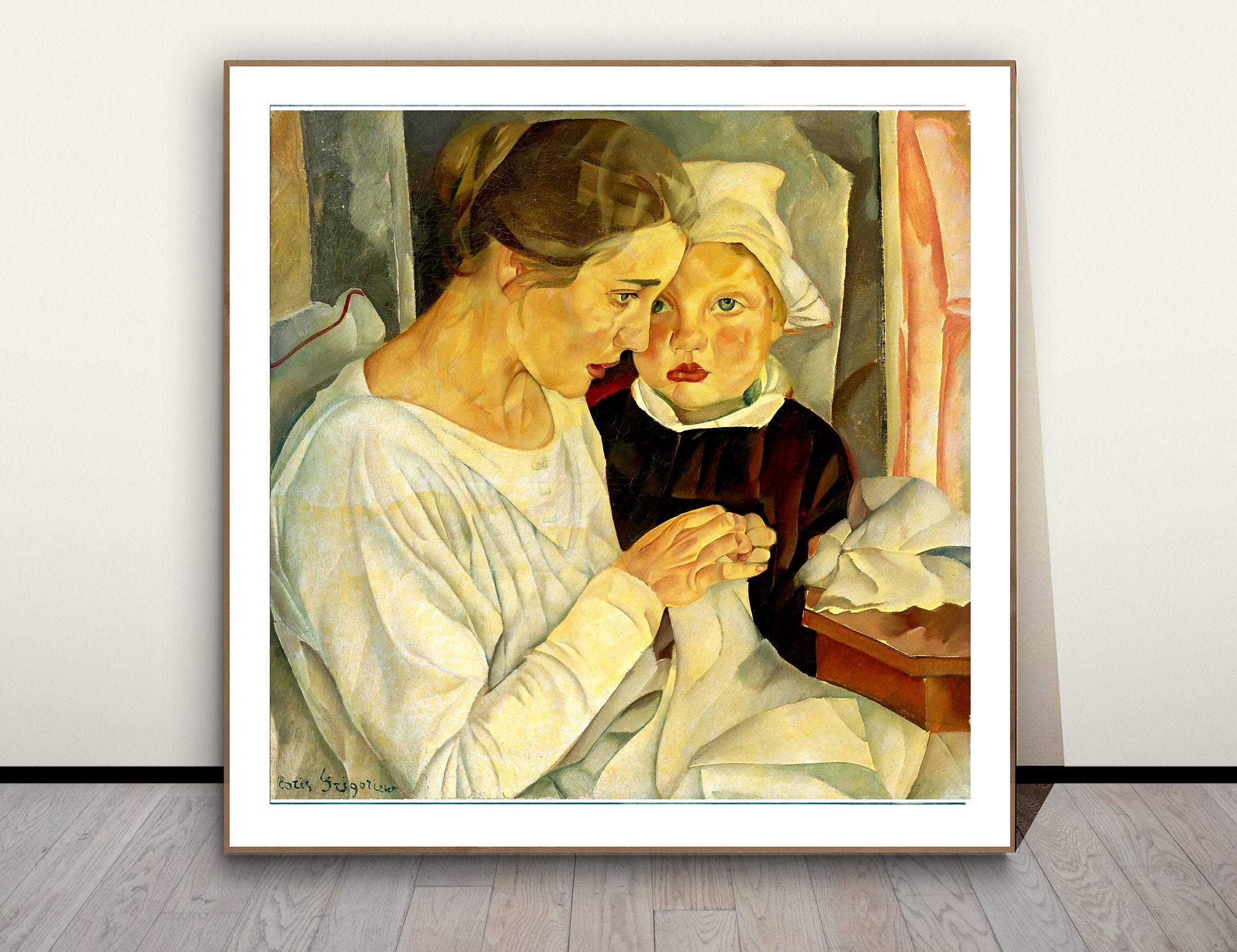 Mother and Child by Boris Dmitryevich Grigoriev Fine Art Print - Poster Paper or Canvas Print / Gift Idea / Wall Decor