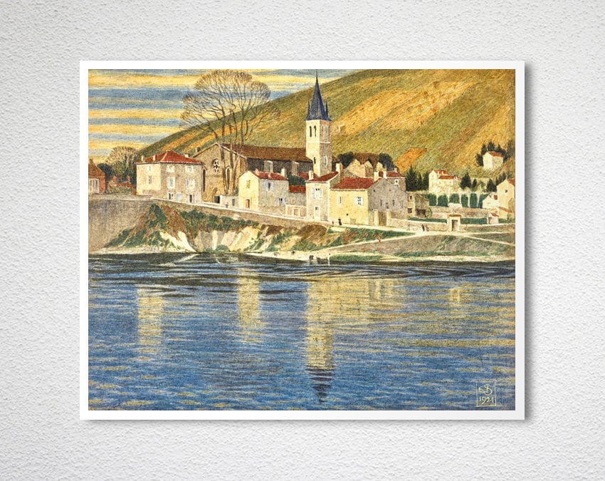 Bord du Lac Italien by Joseph Edward Southall Fine Art Print - Poster Paper, Canvas Print