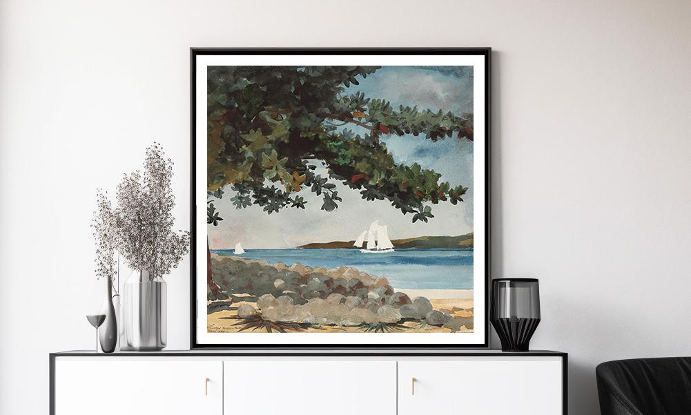 Nassau, Water and Sailboat by Winslow Homer - Poster Paper, Canvas Giclee Print
