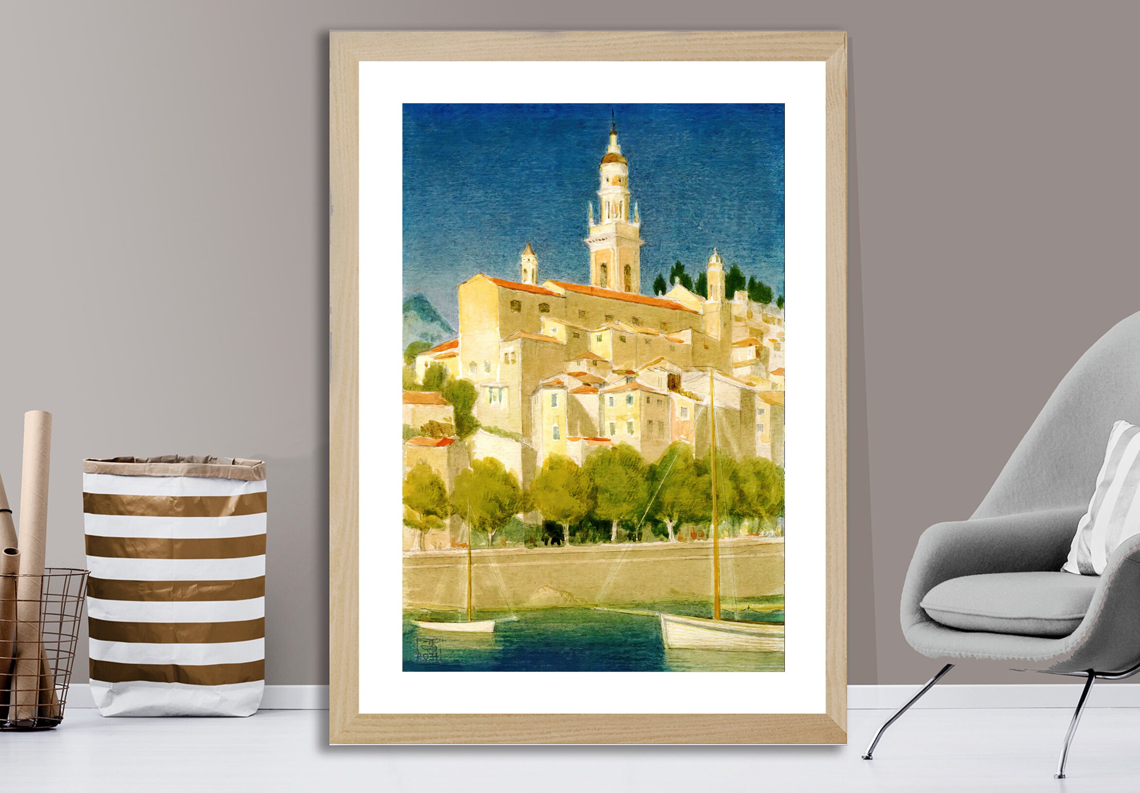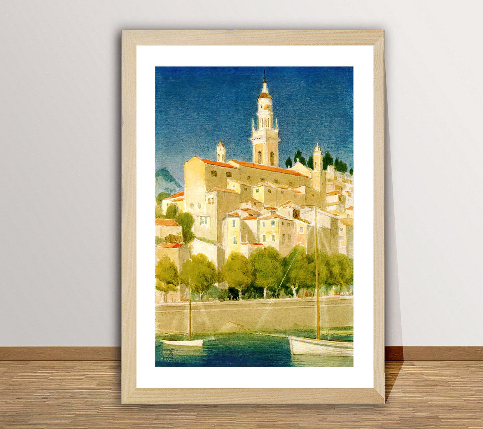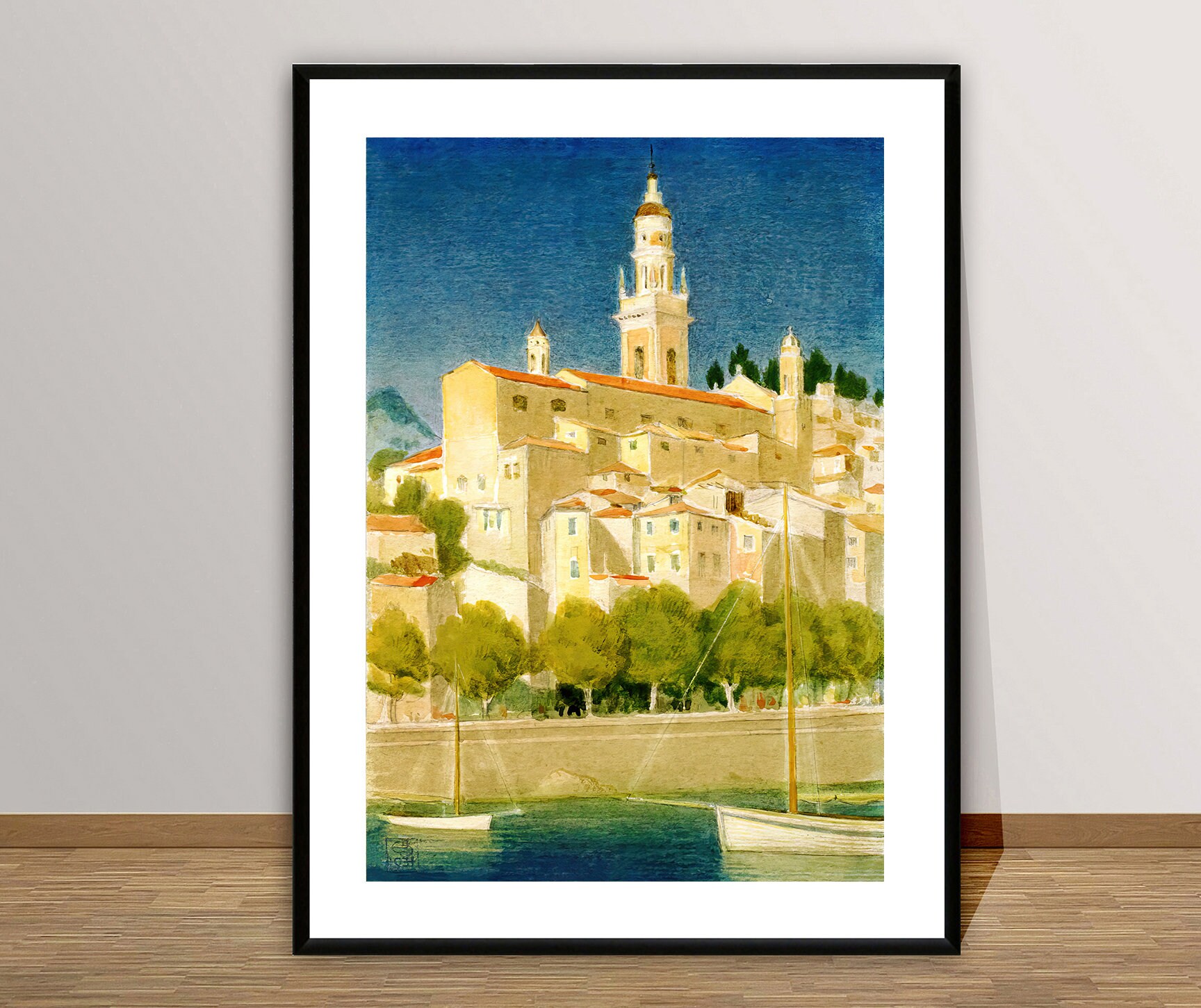 Menton by Joseph Edward Southall, Fine Art Print, Travel Artwork, Coastal Décor, Landscape Poster