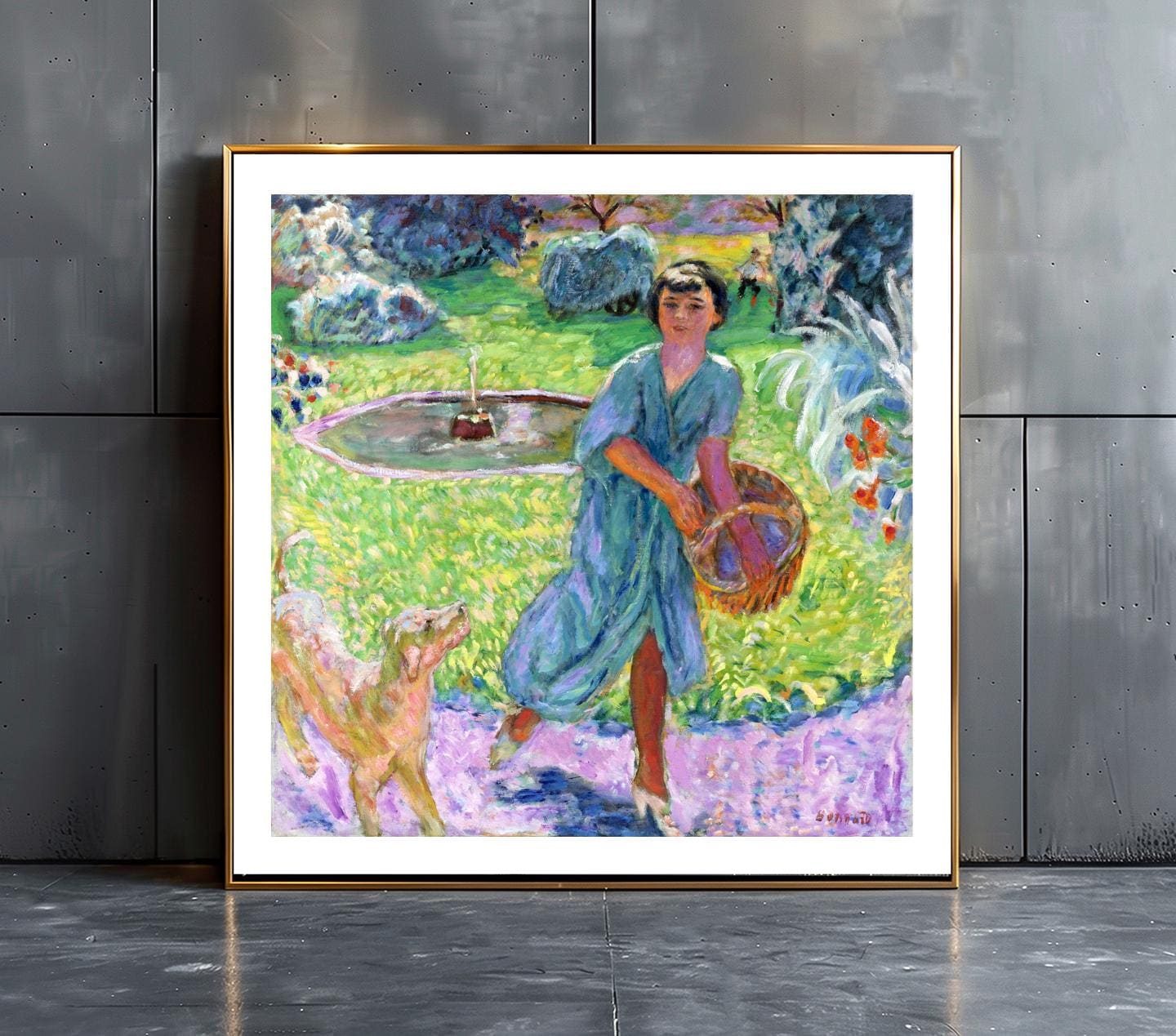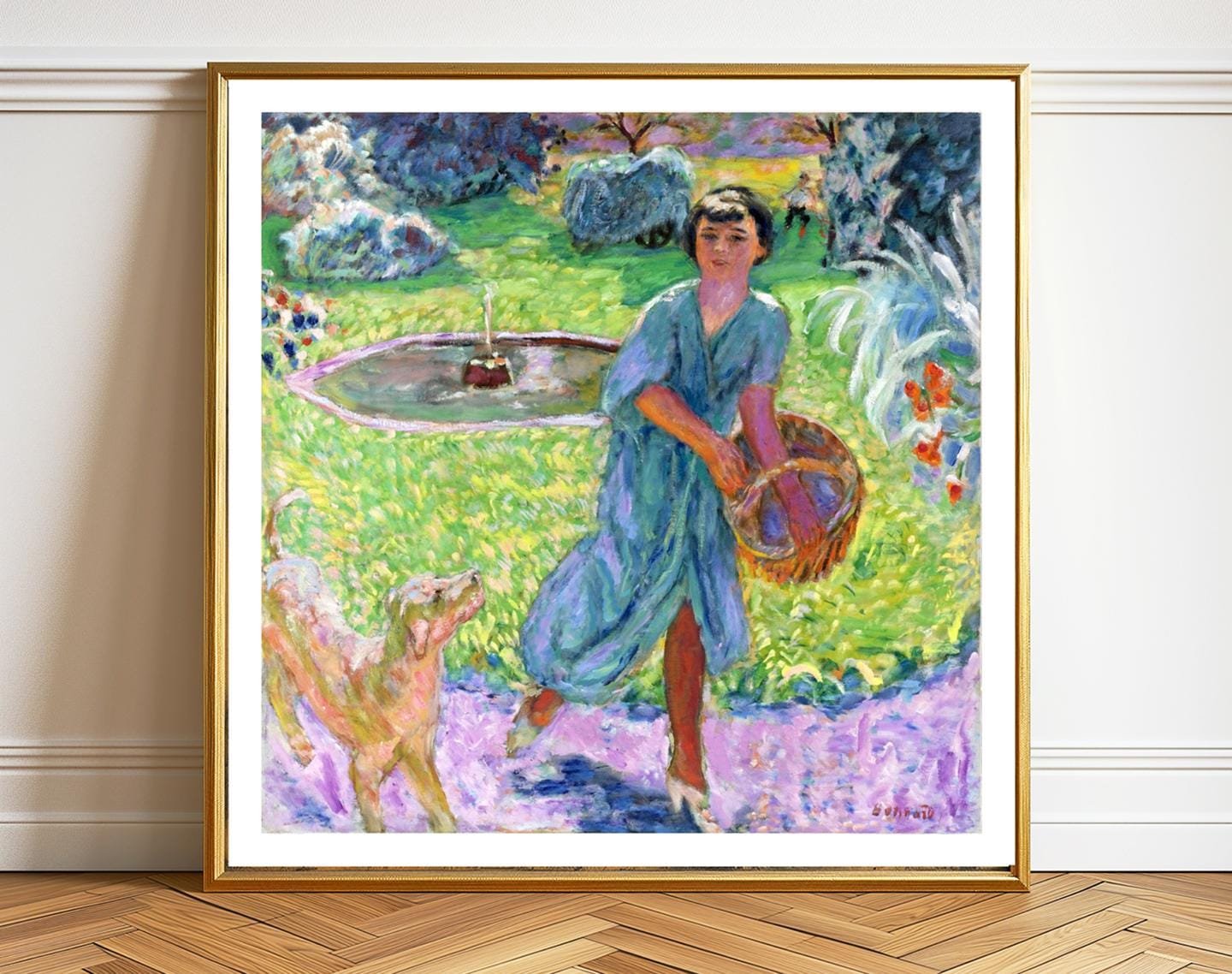 Pierre Bonnard Print: Young Girl with Dog, Garden Scene