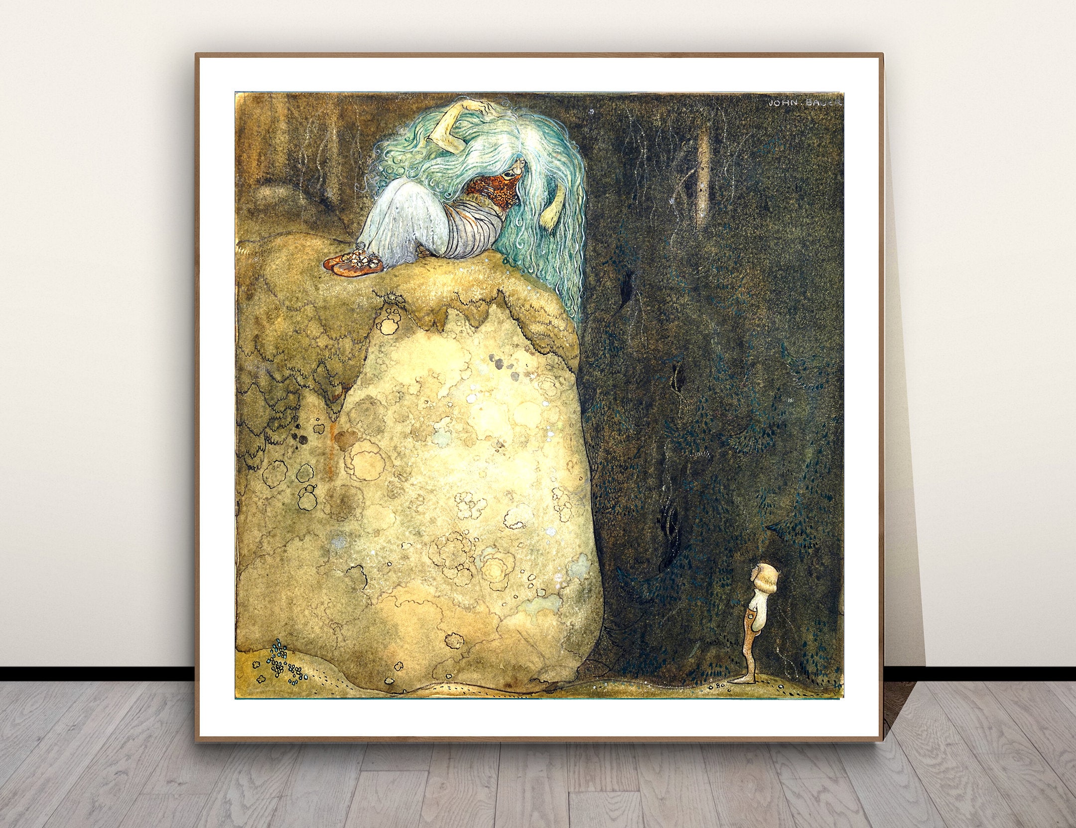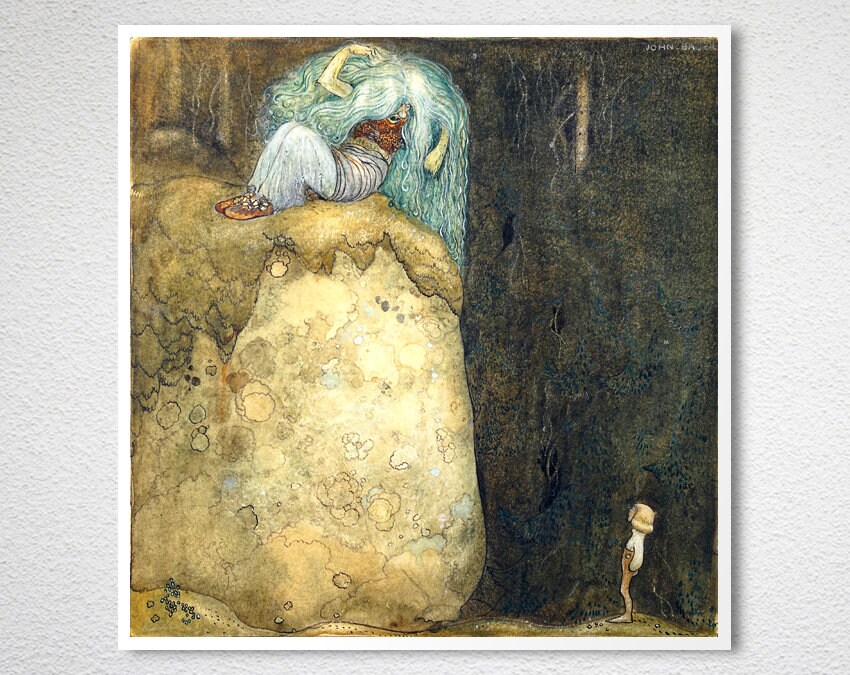 John Bauer Art Print: Boy and Troll Illustration, Scandinavian Folklore