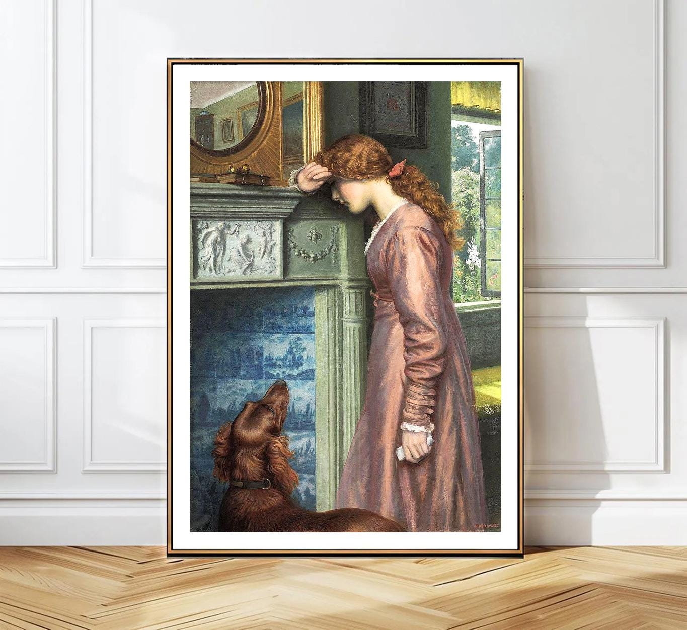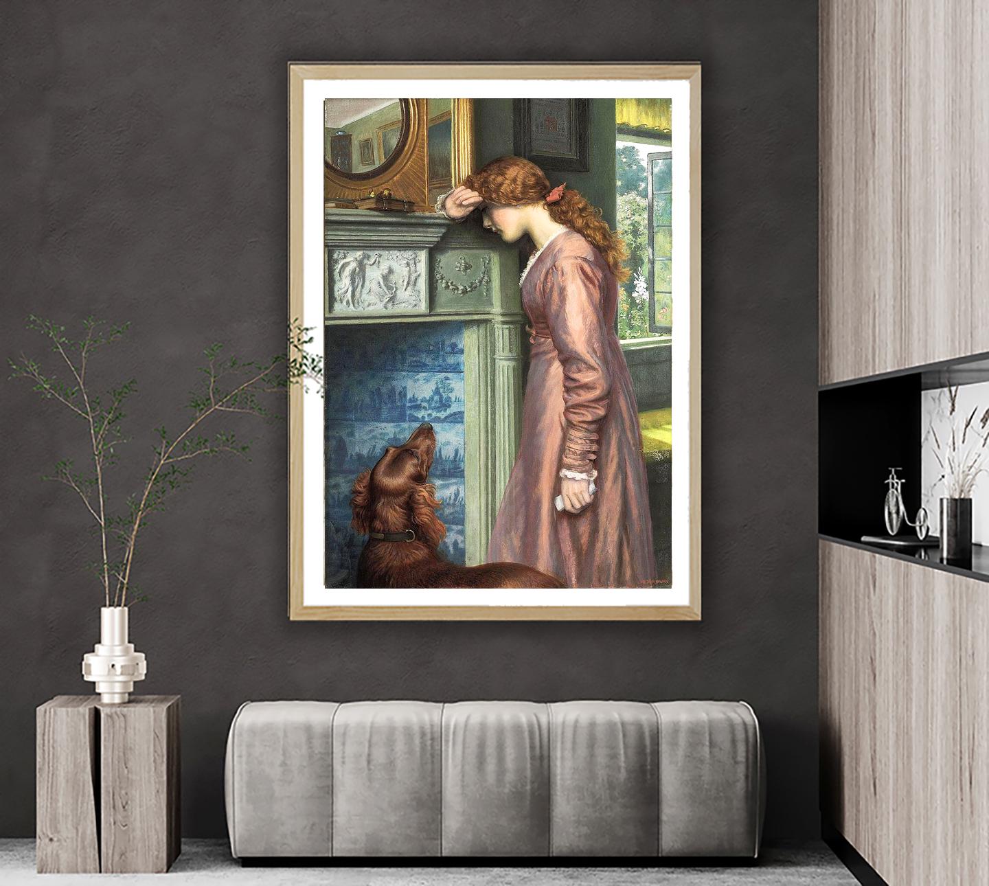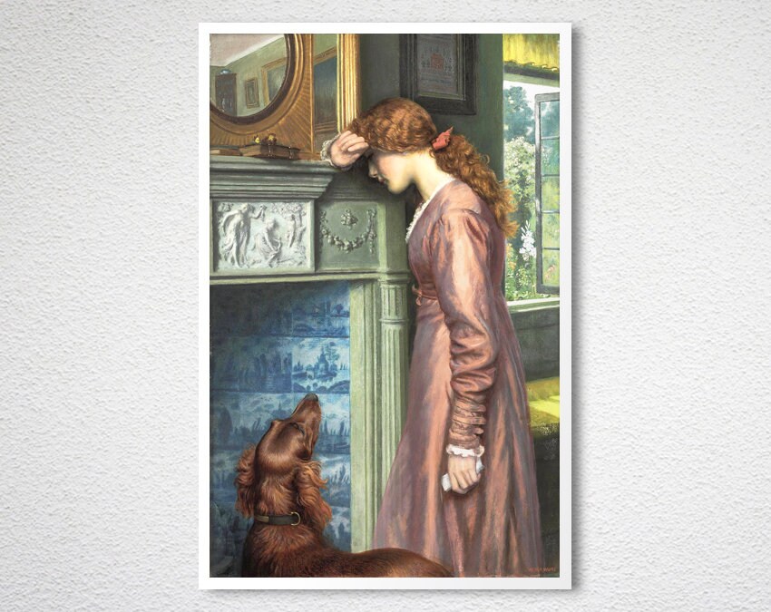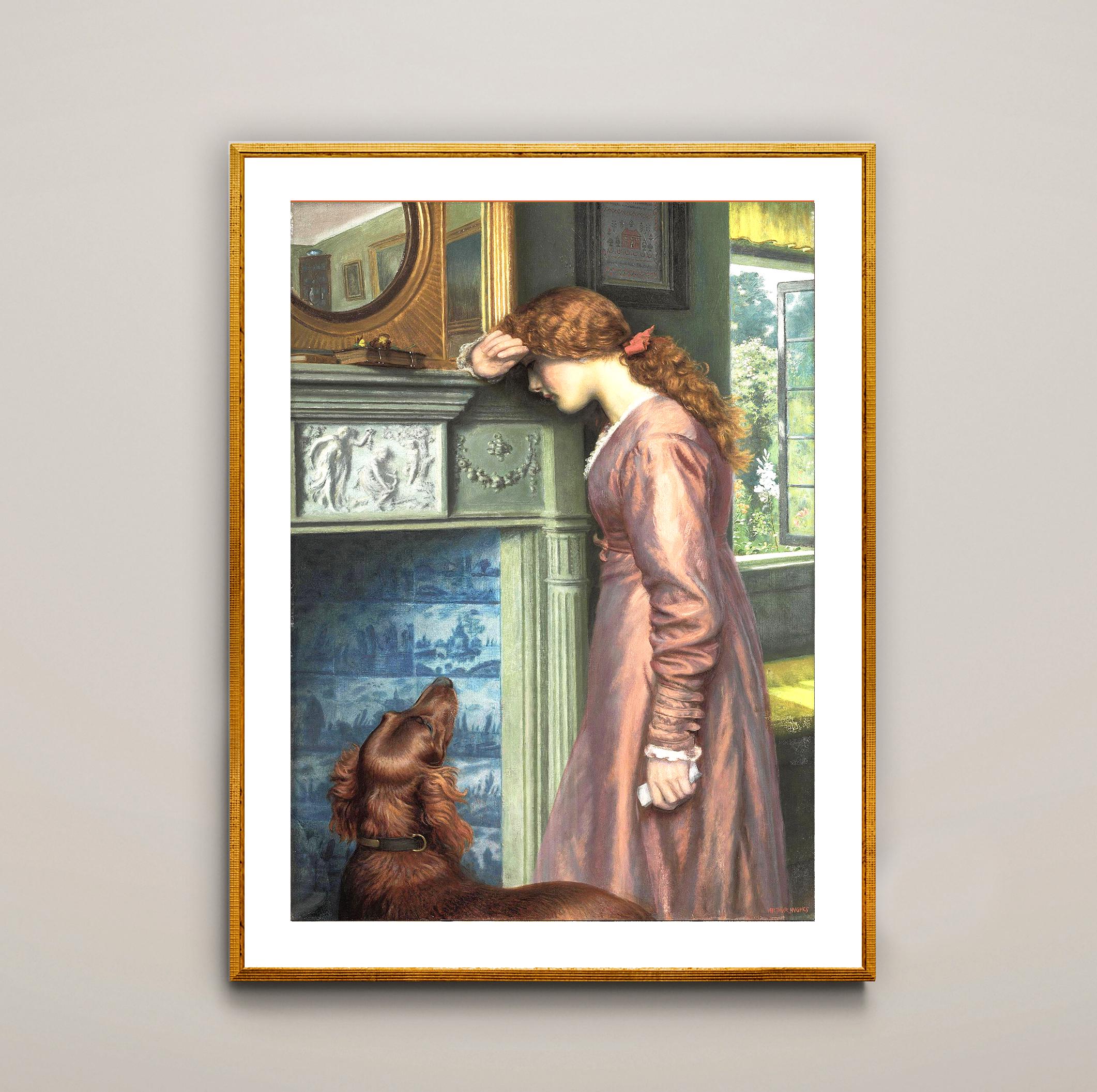 Arthur Hughes Art Print: A Passing Cloud, Victorian Woman and Dog