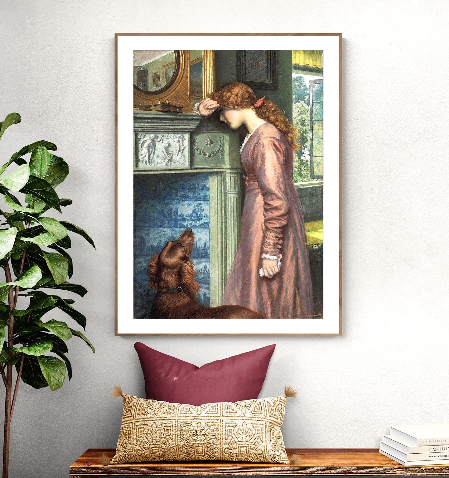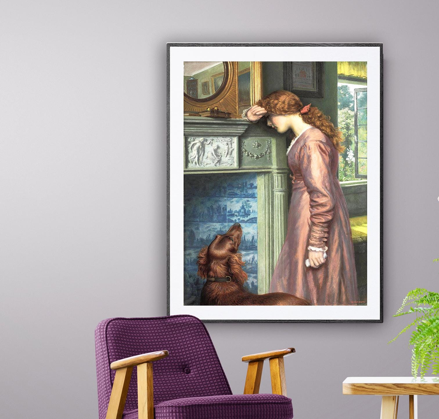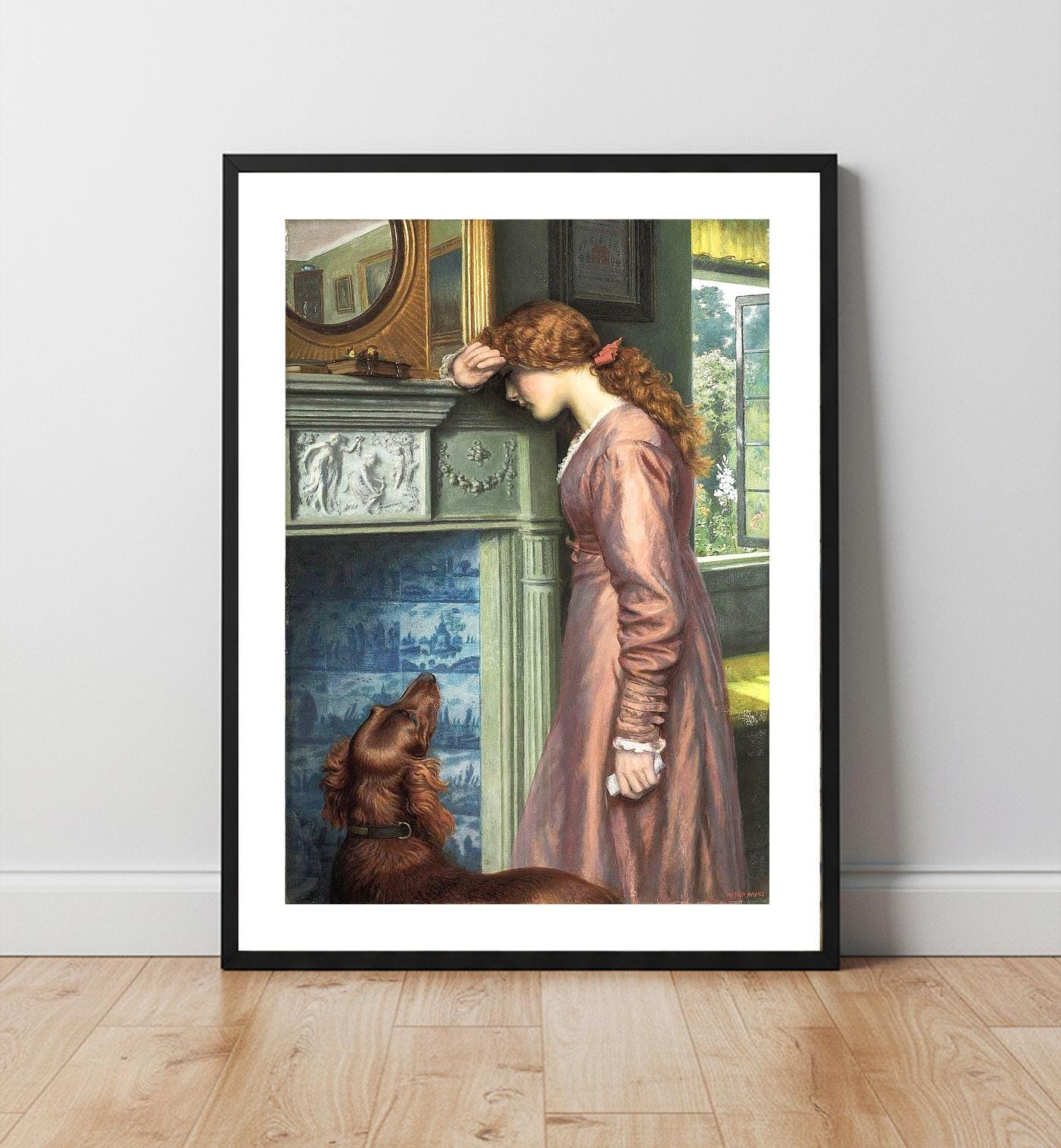Arthur Hughes Art Print: A Passing Cloud, Victorian Woman and Dog
