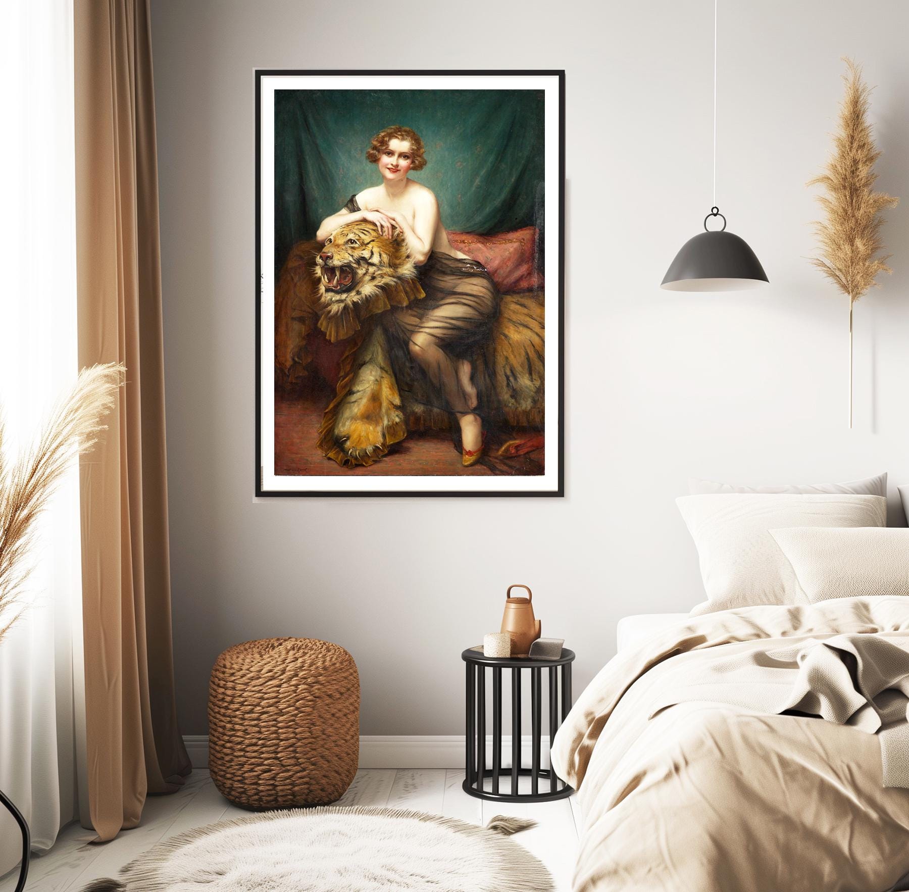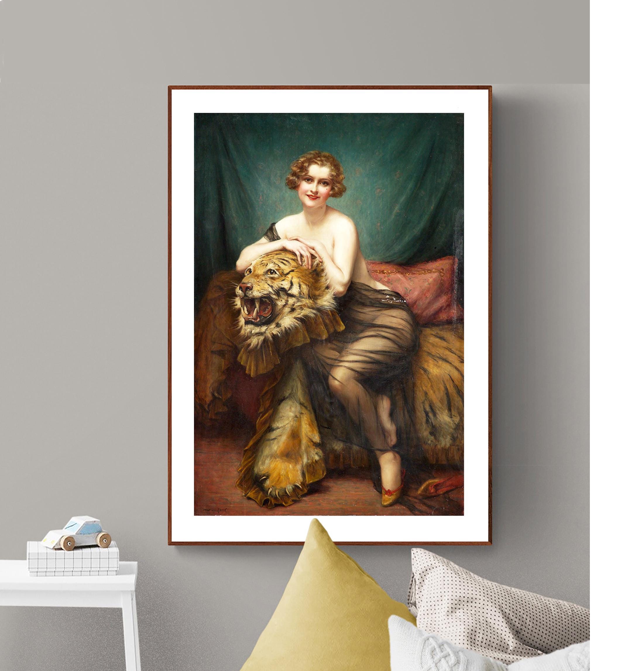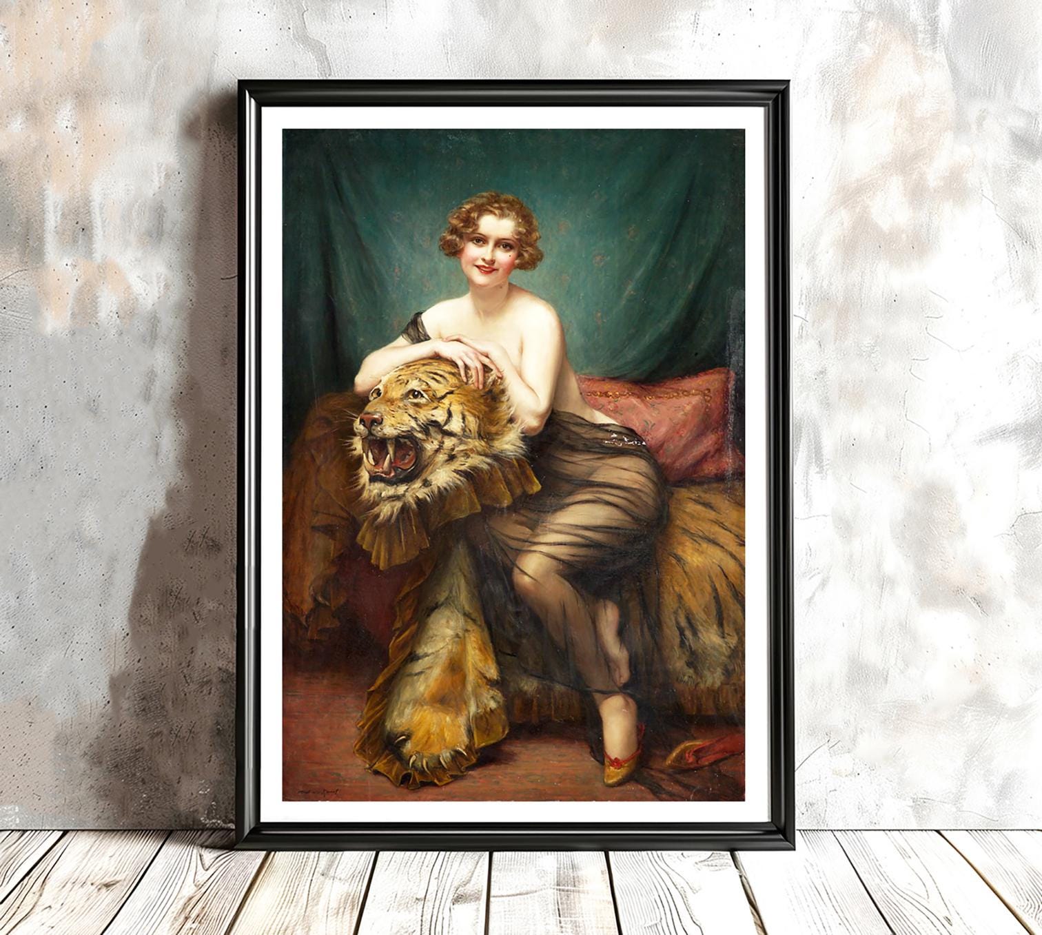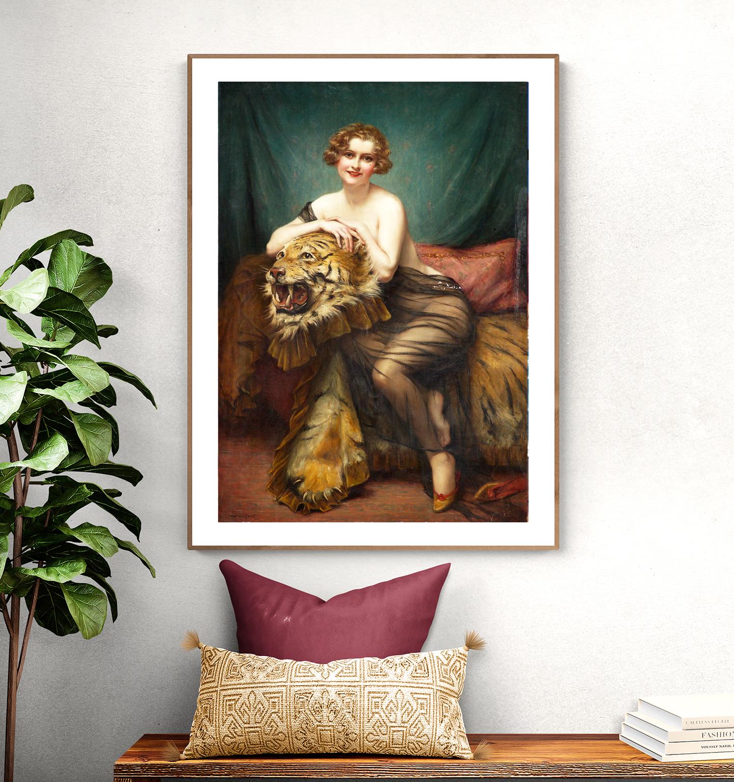 François Martin Kavel Art Print: Woman with Tiger Skin - Wild Beauty Fine Art Reproduction