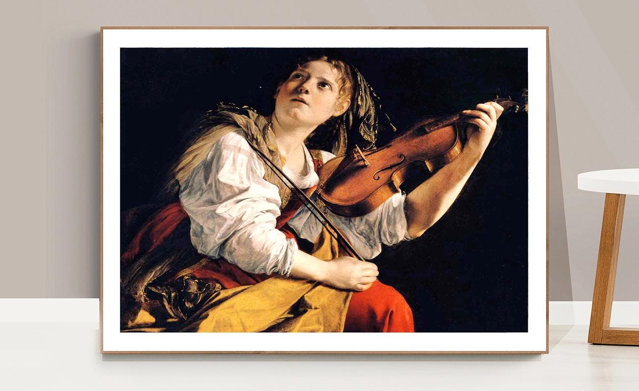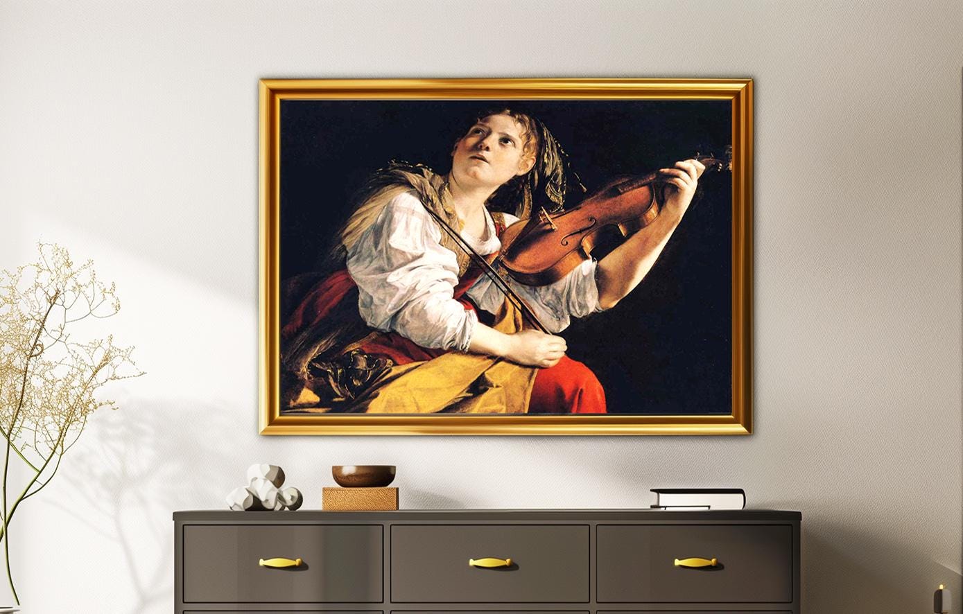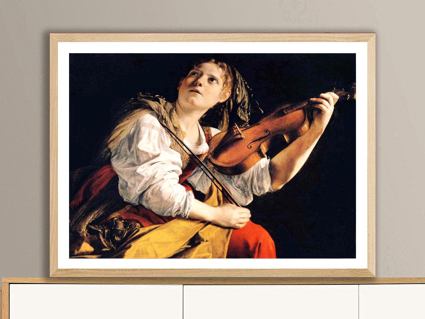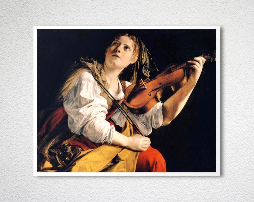 Young Woman Playing a Violin by Orazio Gentileschi Fine Art Print - Poster Paper or Canvas Print / Gift Idea / Wall Decor