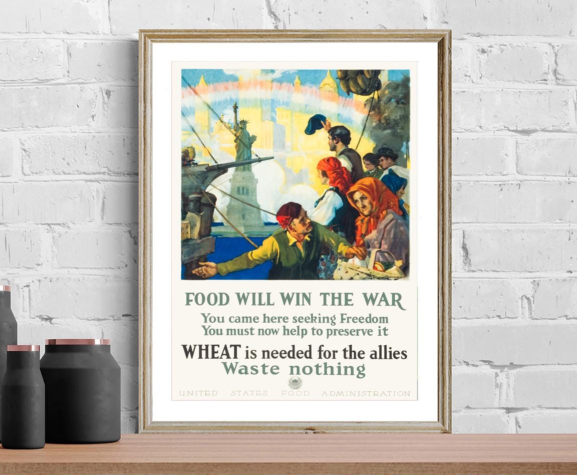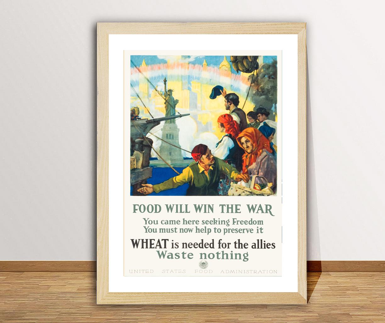 Food will Win the Far, You Came Here Seeking Freedom, You must Now Help to Preserve it, What is Needed for the Allies, Waste Nothing Fine Art Print - Poster Paper or Canvas Print