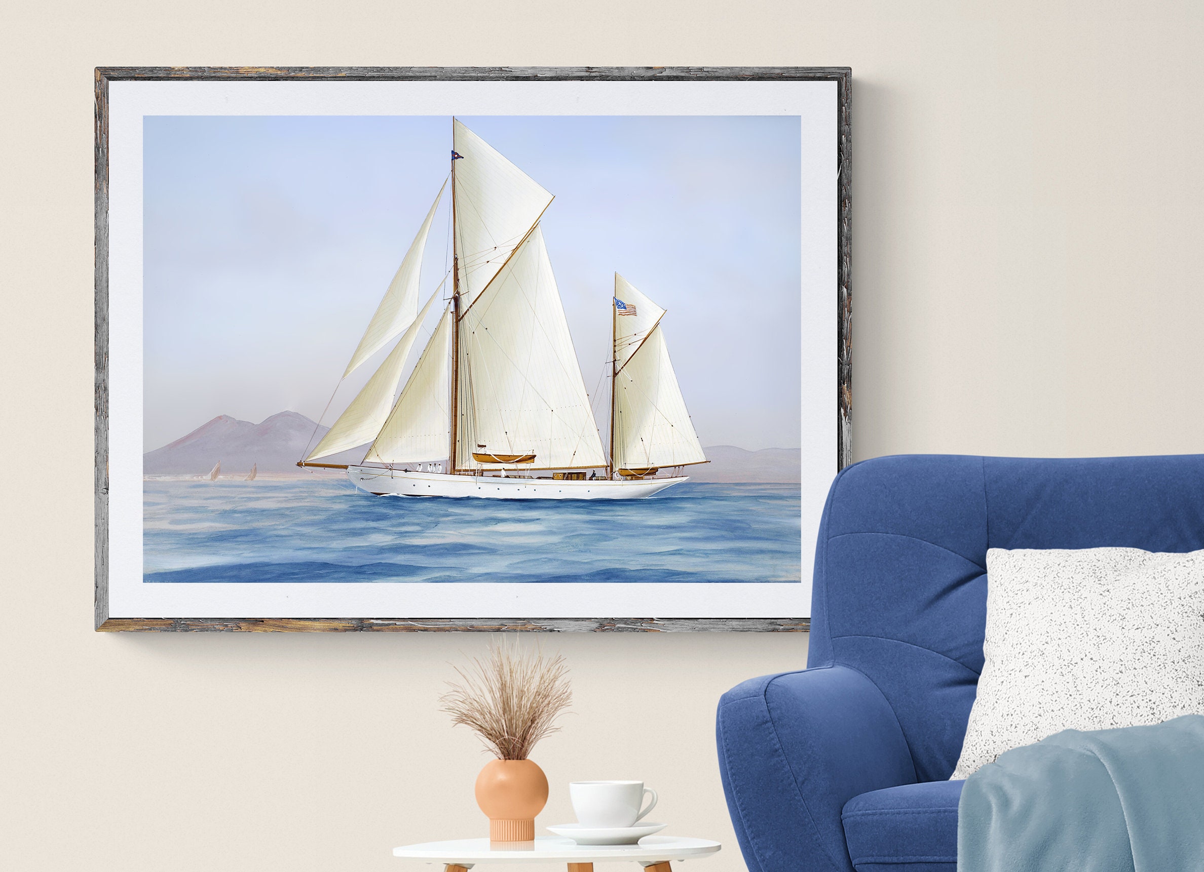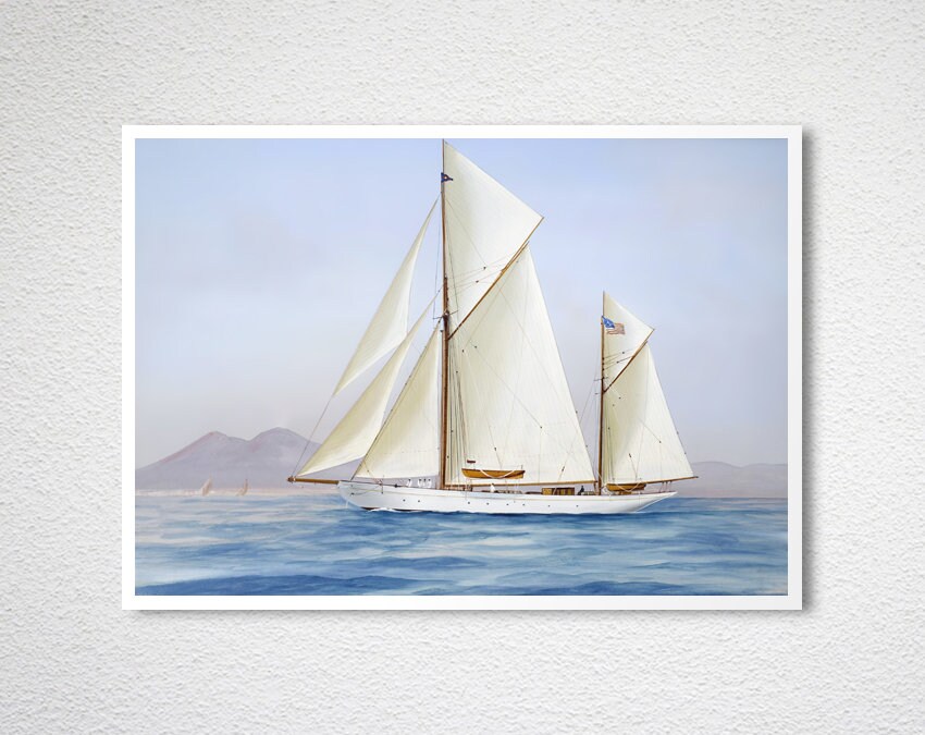 The Racing Ketch Xarifa Flying the Flag of the New York Yacht Club in the Bay of Naples by Antonio de Simone Fine Art Print - Poster Paper, Canvas Print