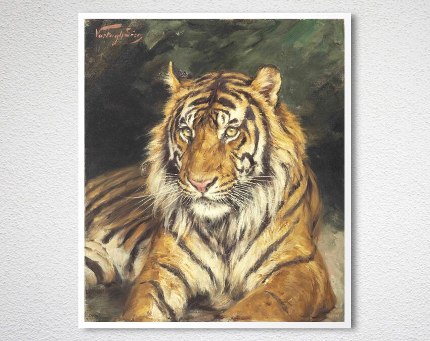 A Reclining Tiger by Geza Vastagh Fine Art Print - Poster Paper or Canvas Print / Gift Idea / Wall Decor