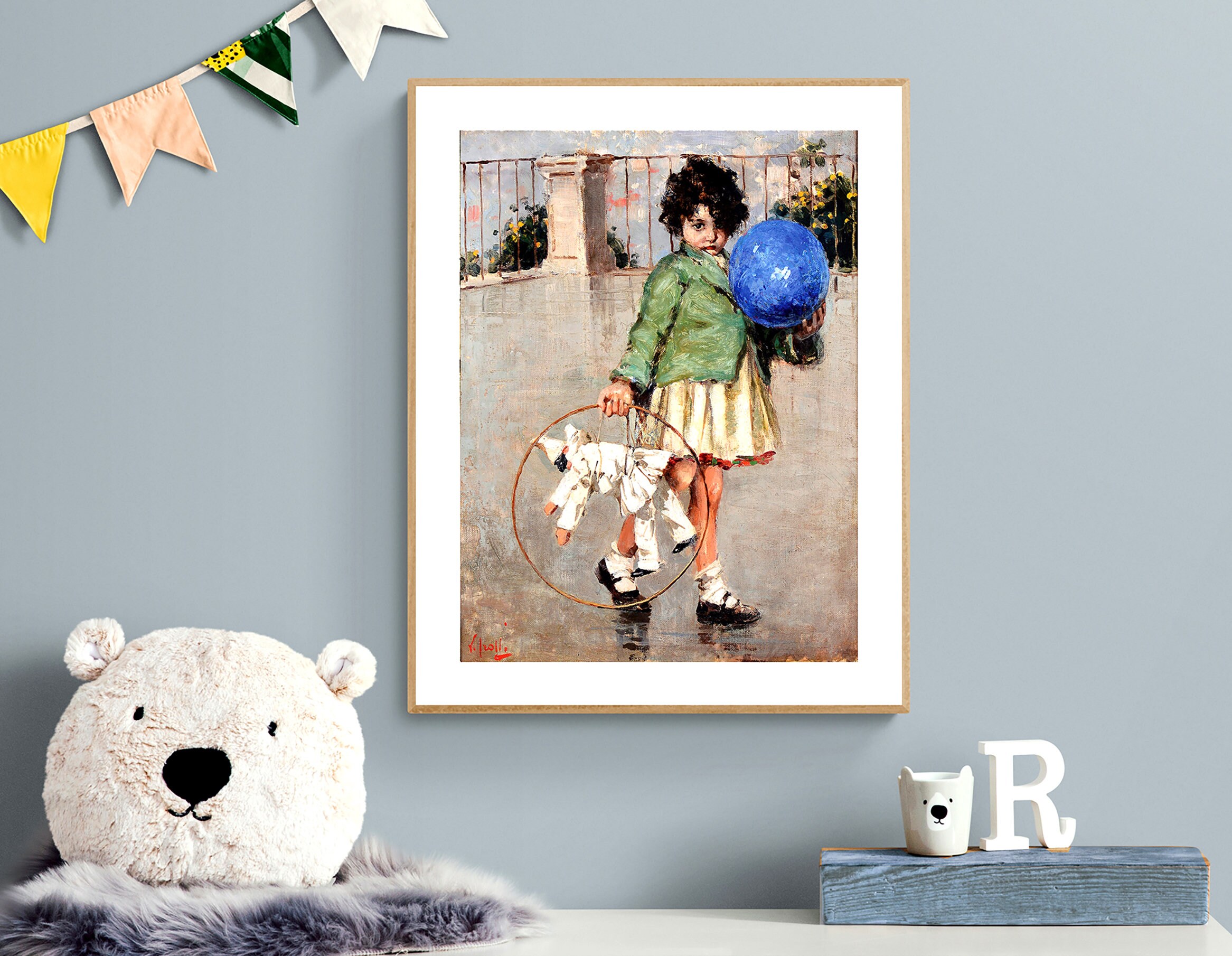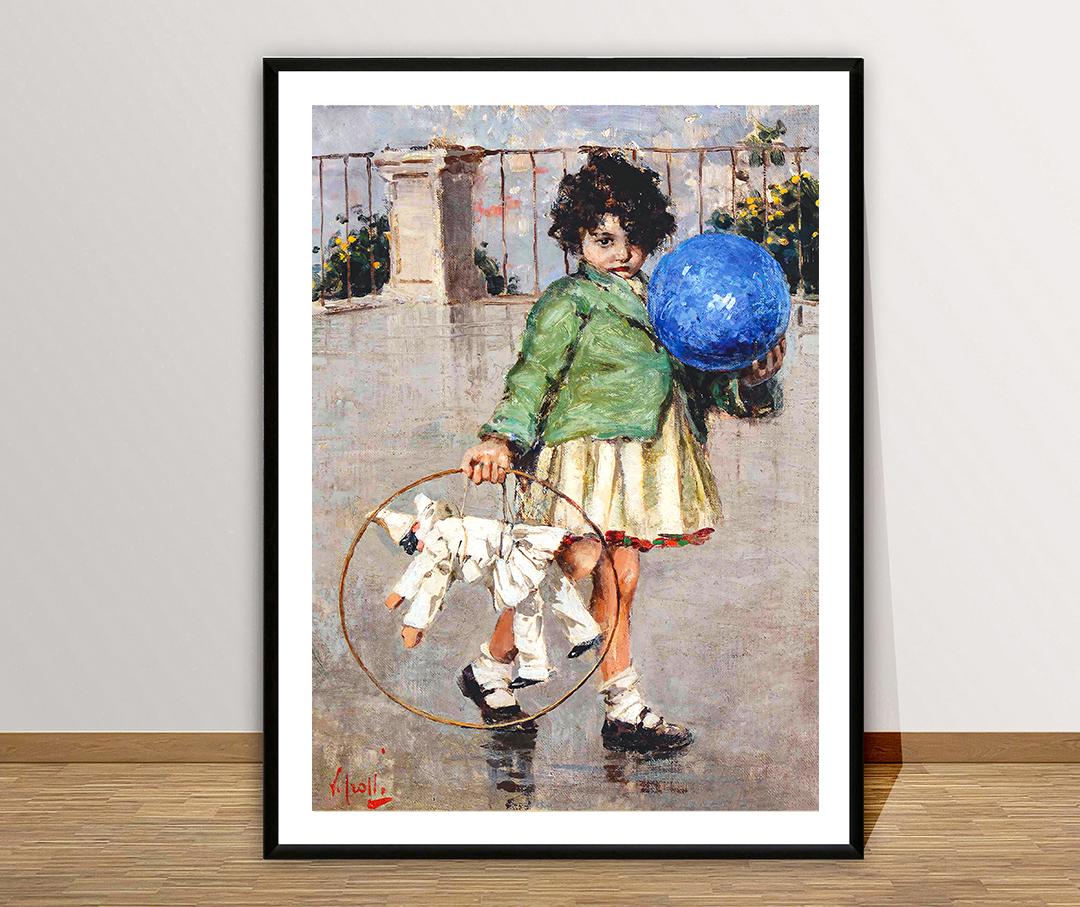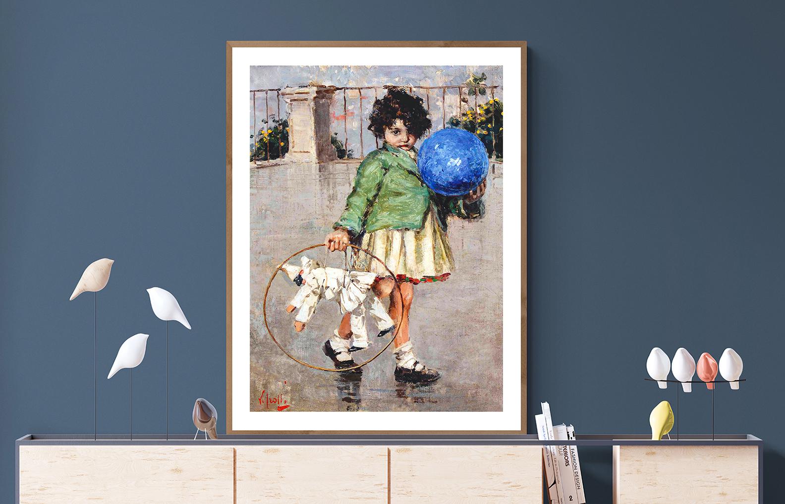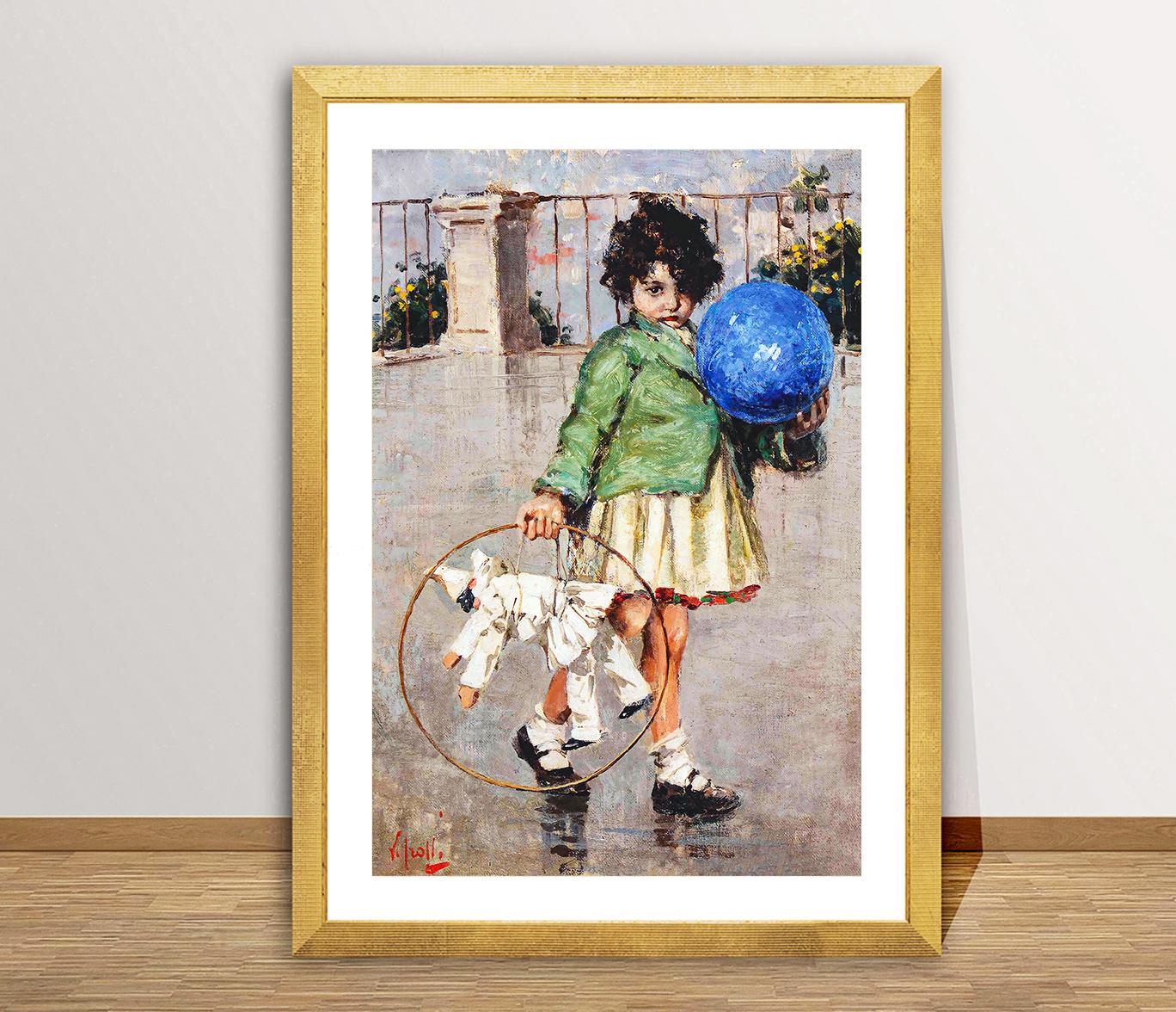 Bambina con palla e marionetta by Vincenzo Irolli Fine Art Print - Poster Paper, Canvas Print
