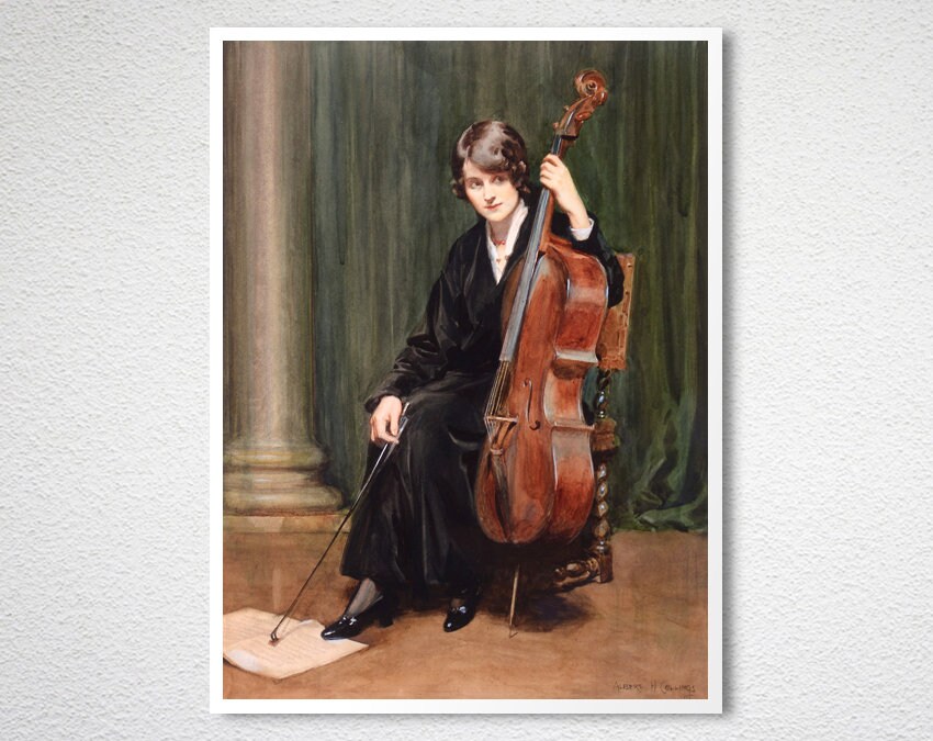 Portrait of a Female Cellist by Albert Henry Collings Fine Art Print - Poster Paper or Canvas Print / Gift Idea / Wall Decor