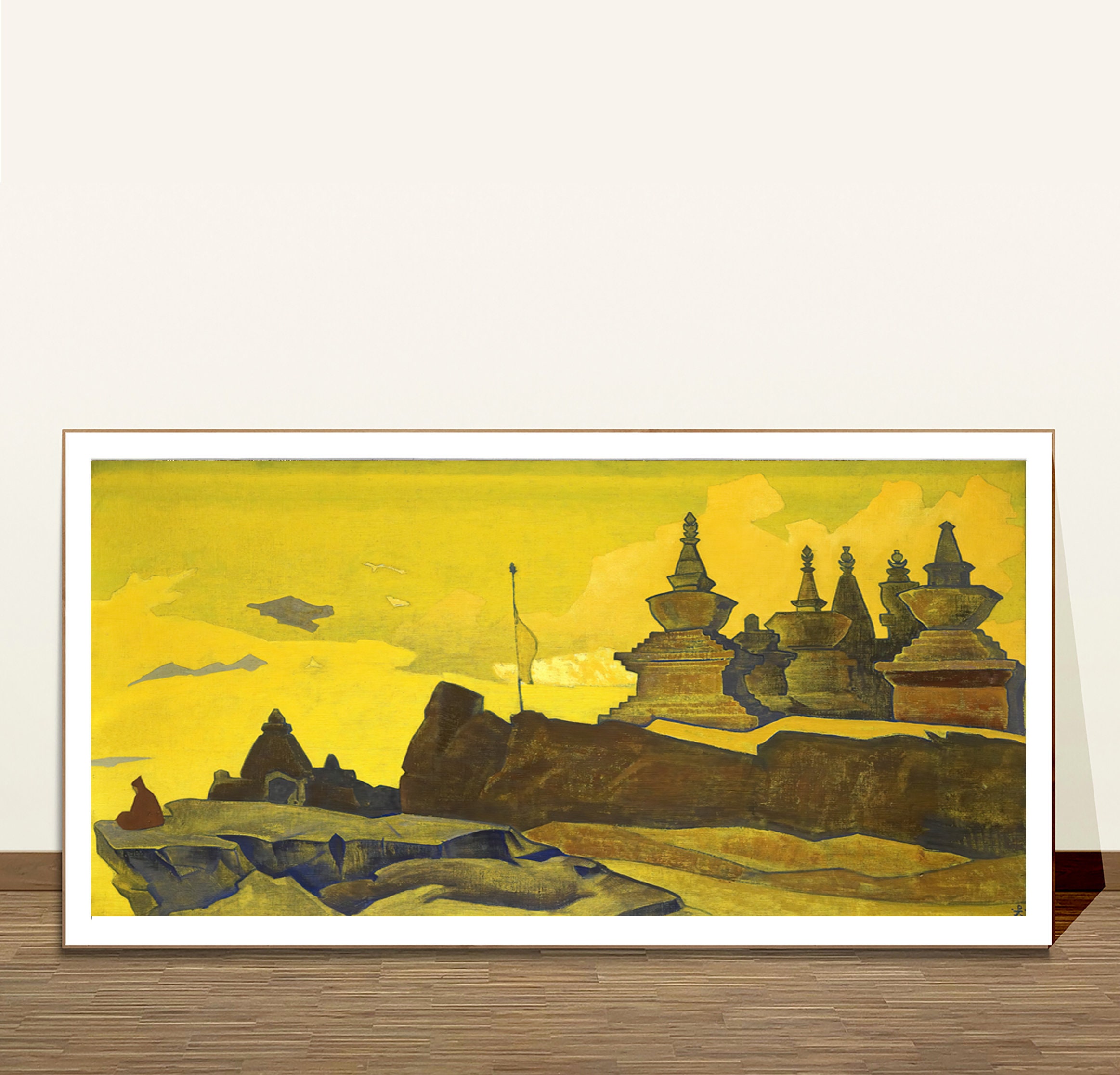 Printed on high quality paper, cotton canvas or adhesive sticker paper. A high quality reproduction of painting by Nicholas Roerich. Professional packaging for safe shipping. Natural white border will be added to the image for mounting and framing. Frame is not included.