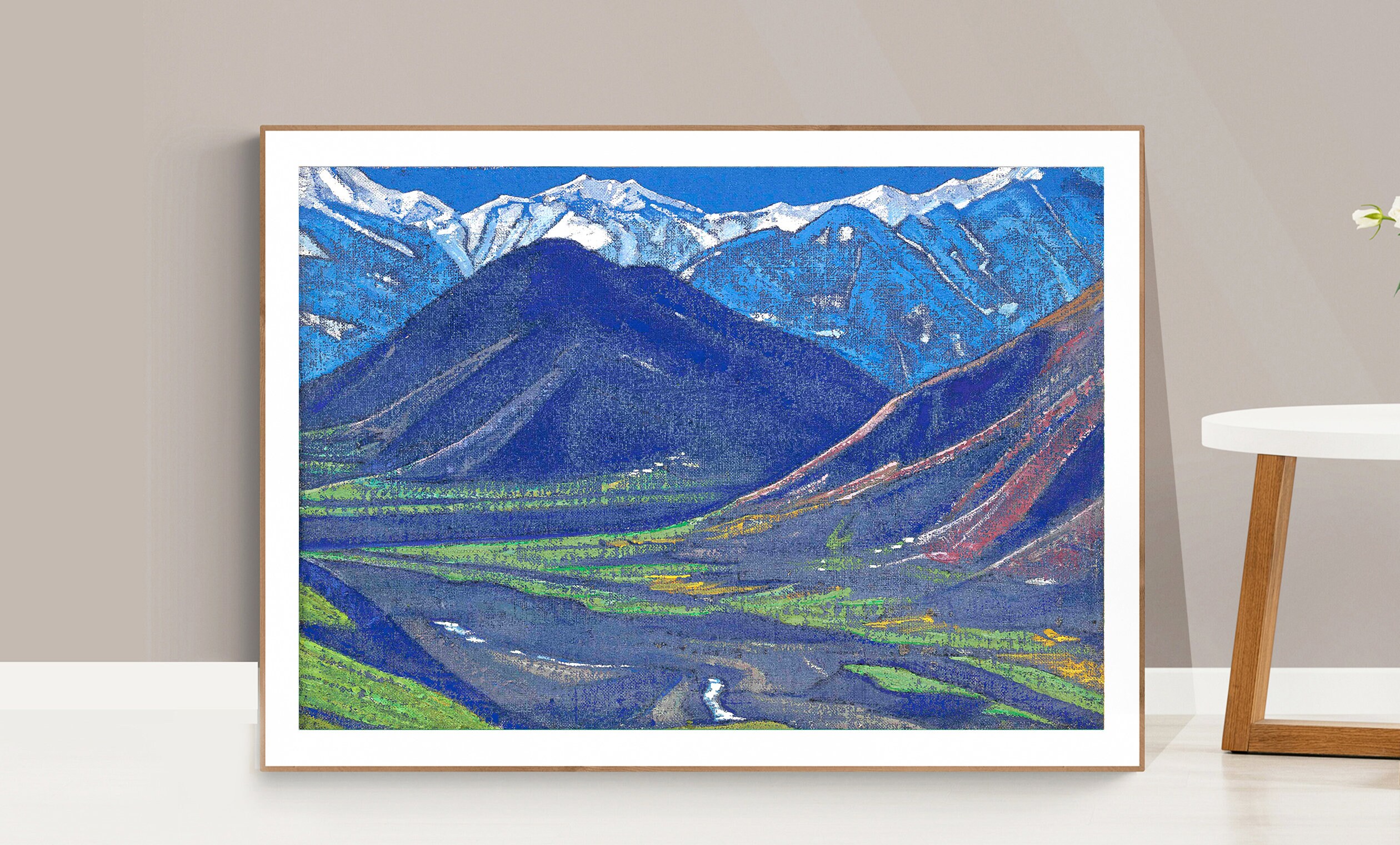 Printed on high quality paper, cotton canvas or adhesive sticker paper. A high quality reproduction of painting by Nicholas Roerich. Professional packaging for safe shipping. Natural white border will be added to the image for mounting and framing. Frame is not included.