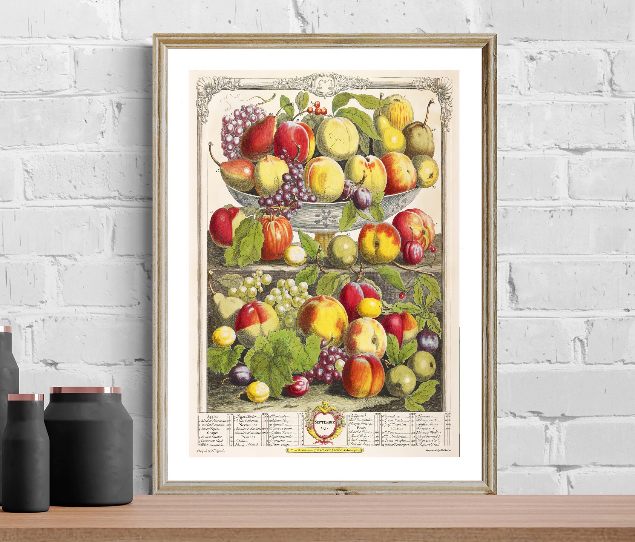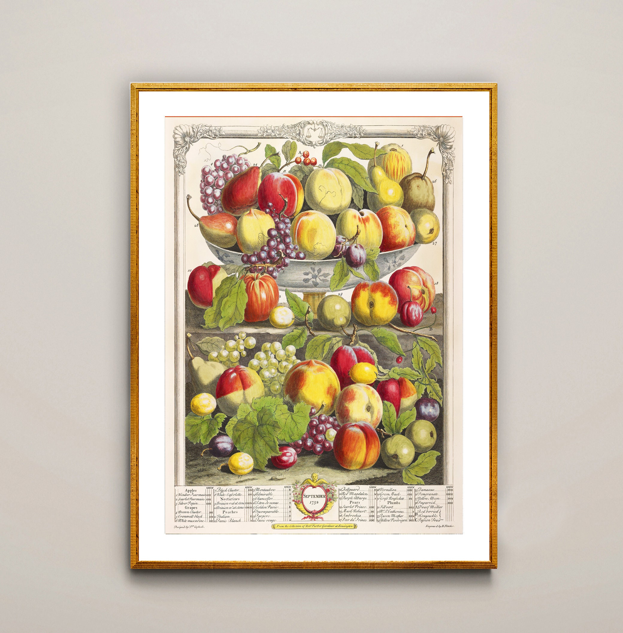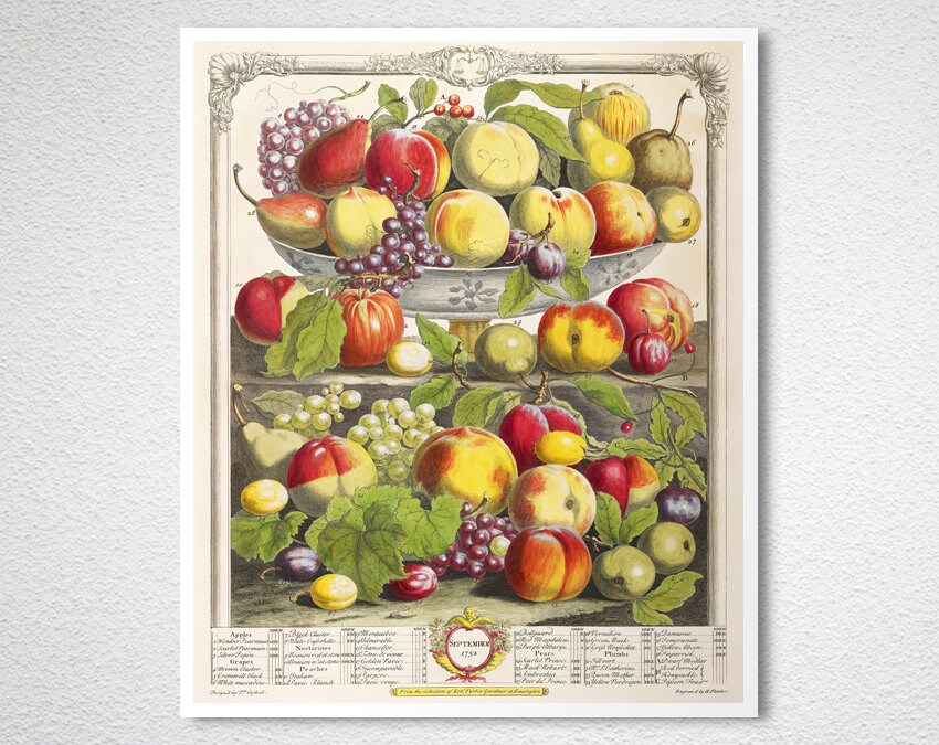 Fruits September Fine Art Print by Robert Furber, Vintage Painting, Food&Drink Artwork, Figurative Poster, Fruits Print, Café Wall Décor