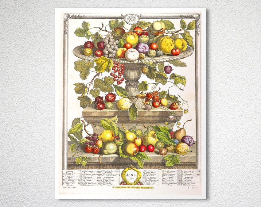Fruits June Fine Art Print by Robert Furber, Vintage Painting, Food&Drink Artwork, Figurative Poster, Fruits Print, Café Wall Décor