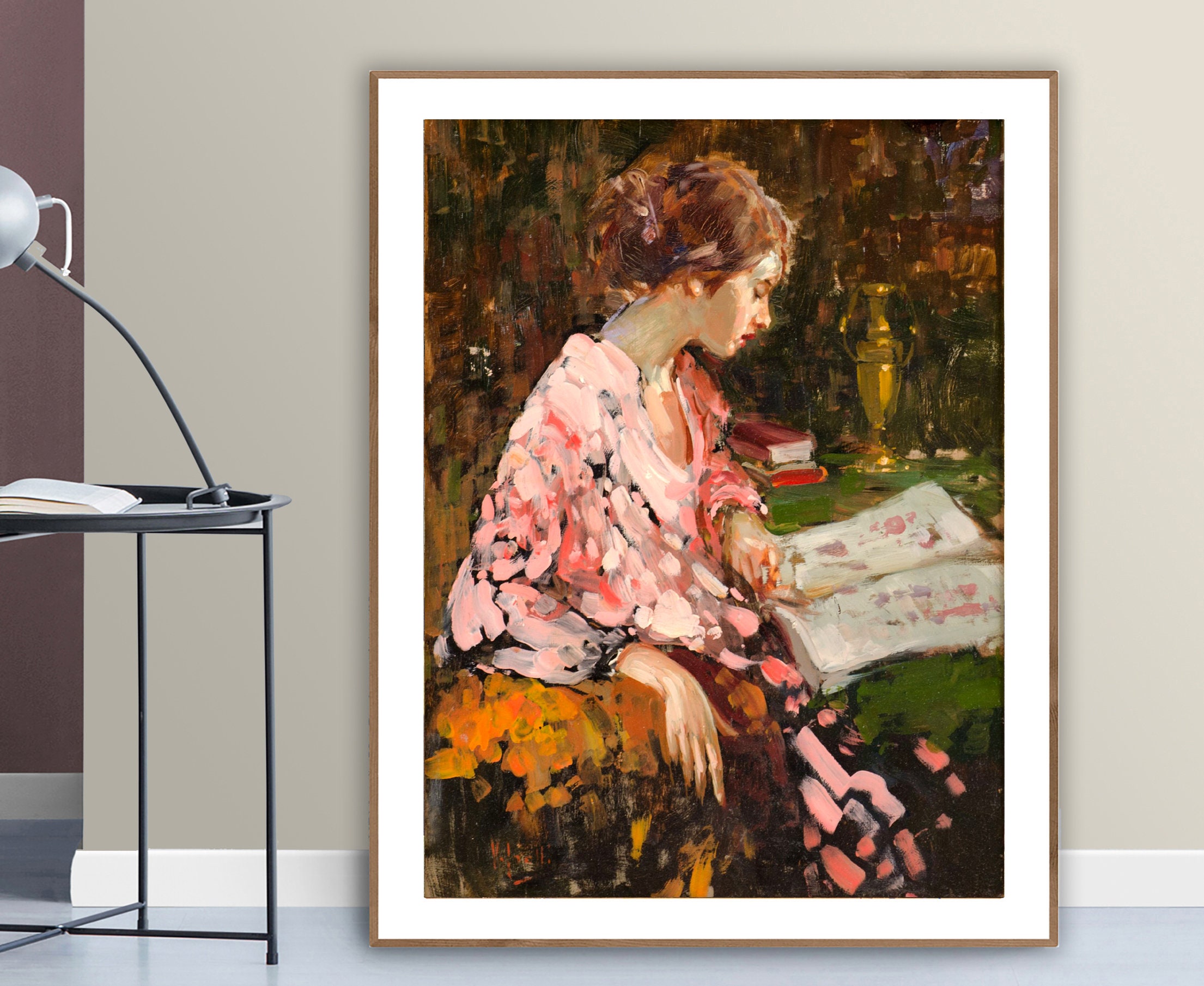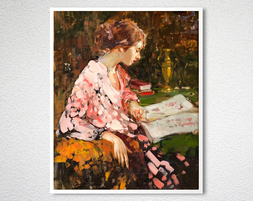 Girl Reading by Vincenzo Irelli Fine Art Print - Poster Paper or Canvas Print / Gift Idea / Wall Decor