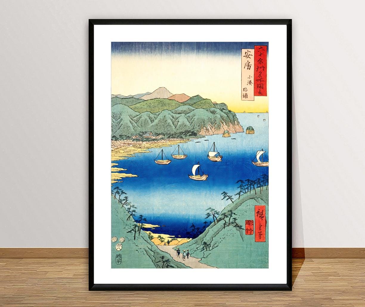 Inlet at Awa Province by Utagawa (or Ando) Hiroshige Fine Art Print - Poster Paper or Canvas Print / Gift Idea