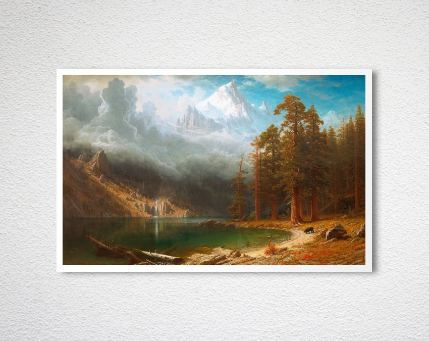 GICLEE printed on high quality paper, cotton canvas or adhesive sticker paper. A high quality reproduction of painting by Albert Bierstadt. Professional packaging for safe shipping. Natural white border will be added to the image for mounting and framing.