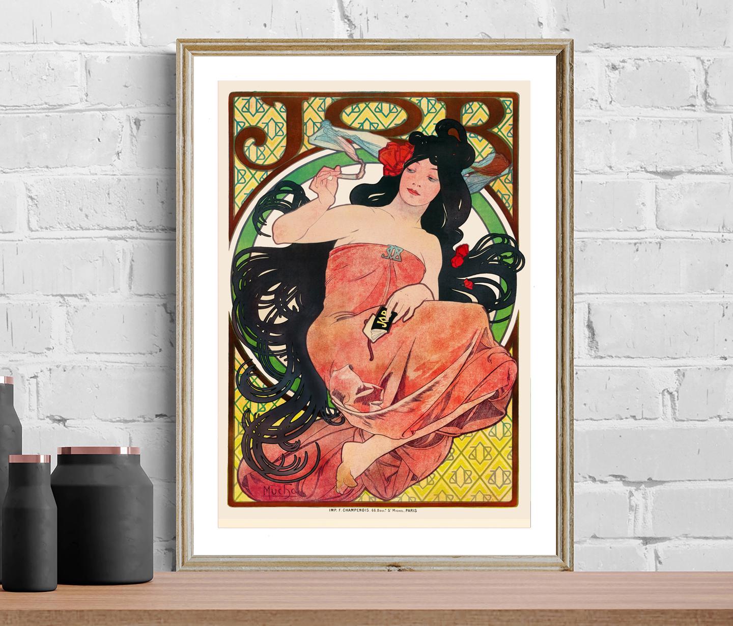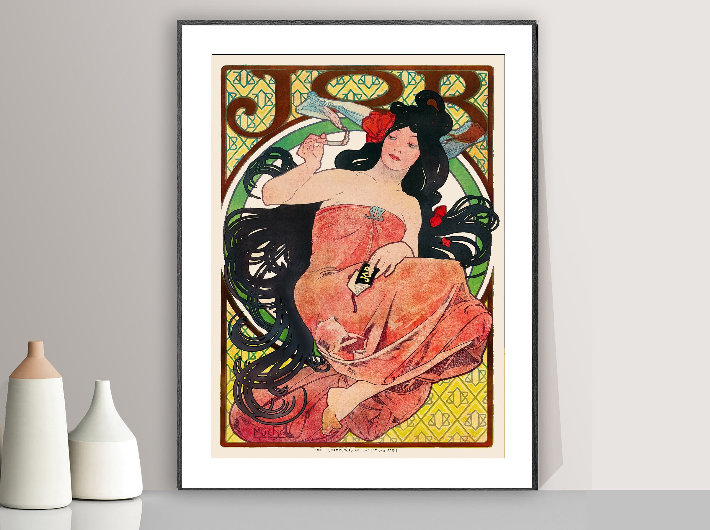 Printed on high quality paper, cotton canvas or adhesive sticker paper. A high quality reproduction of painting by Alphonse Mucha. Professional packaging for safe shipping. Natural white border will be added to the image for mounting and framing.