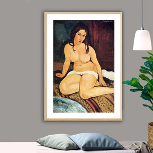 Nu Feminin Debout au Tissu Bleu by Egon Schiele Fine Art Print - Poster Paper or Canvas Print / Gift Idea / Wall Decor