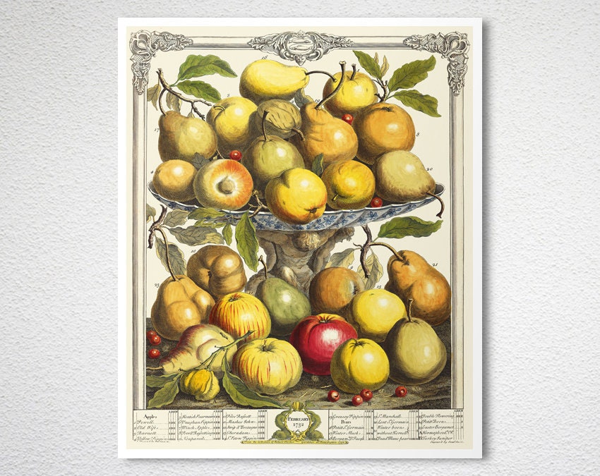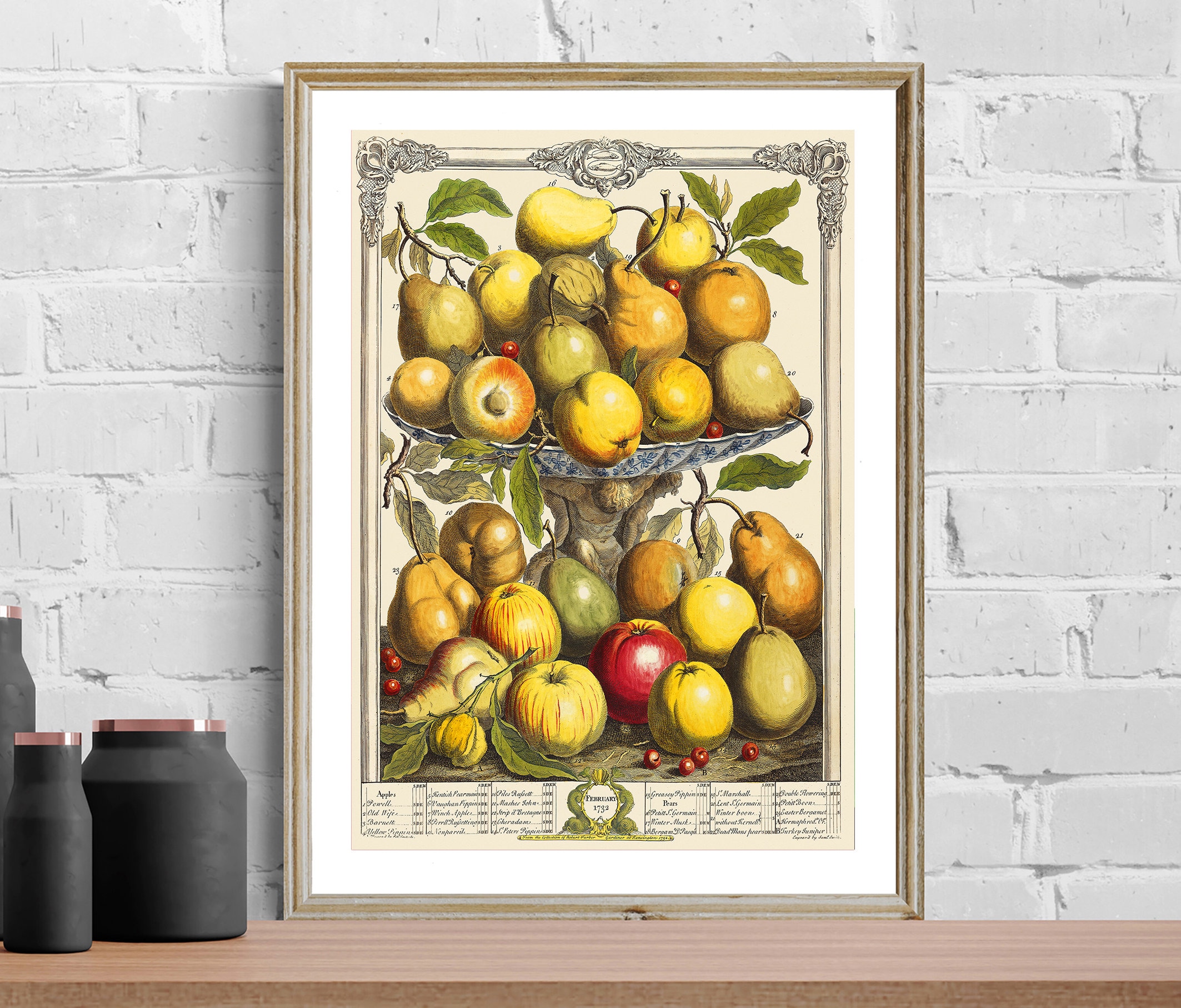 Fruits February Fine Art Print by Robert Furber, Vintage Painting, Food&Drink Artwork, Figurative Poster, Fruits Print, Café Wall Décor