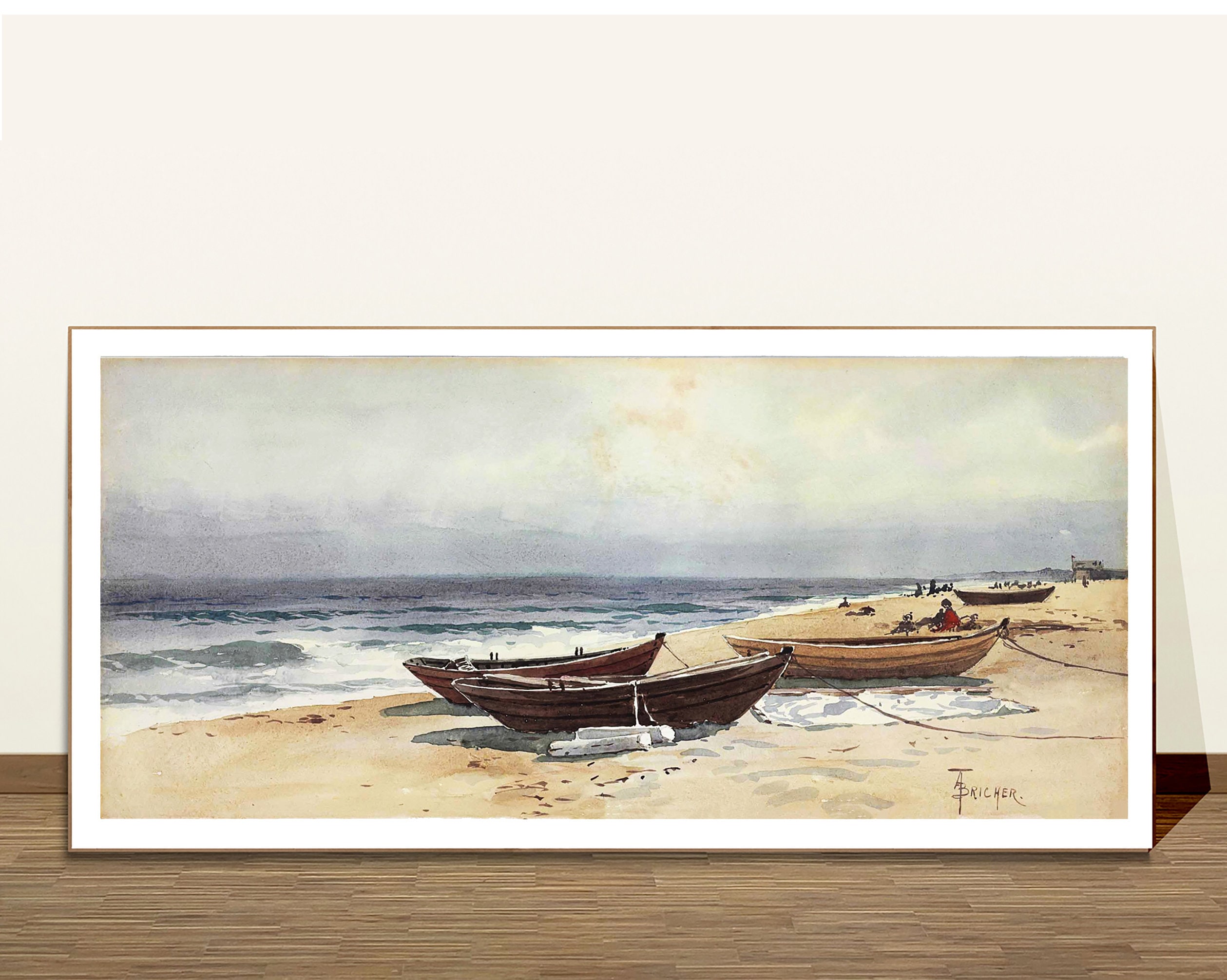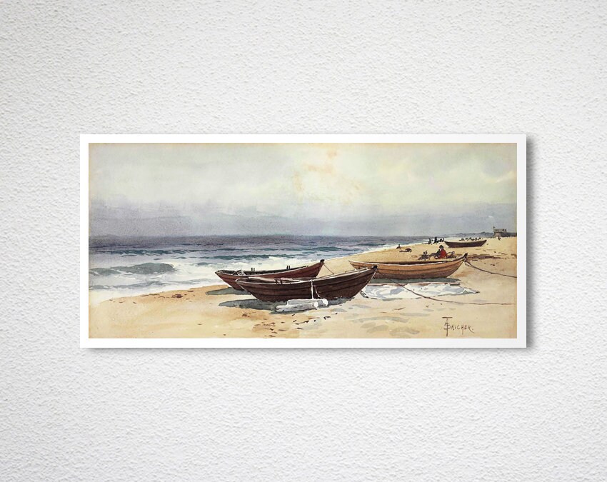 Dories Along a Shore by Alfred Thompson Bricher Fine Art Print - Poster Paper, Canvas Print