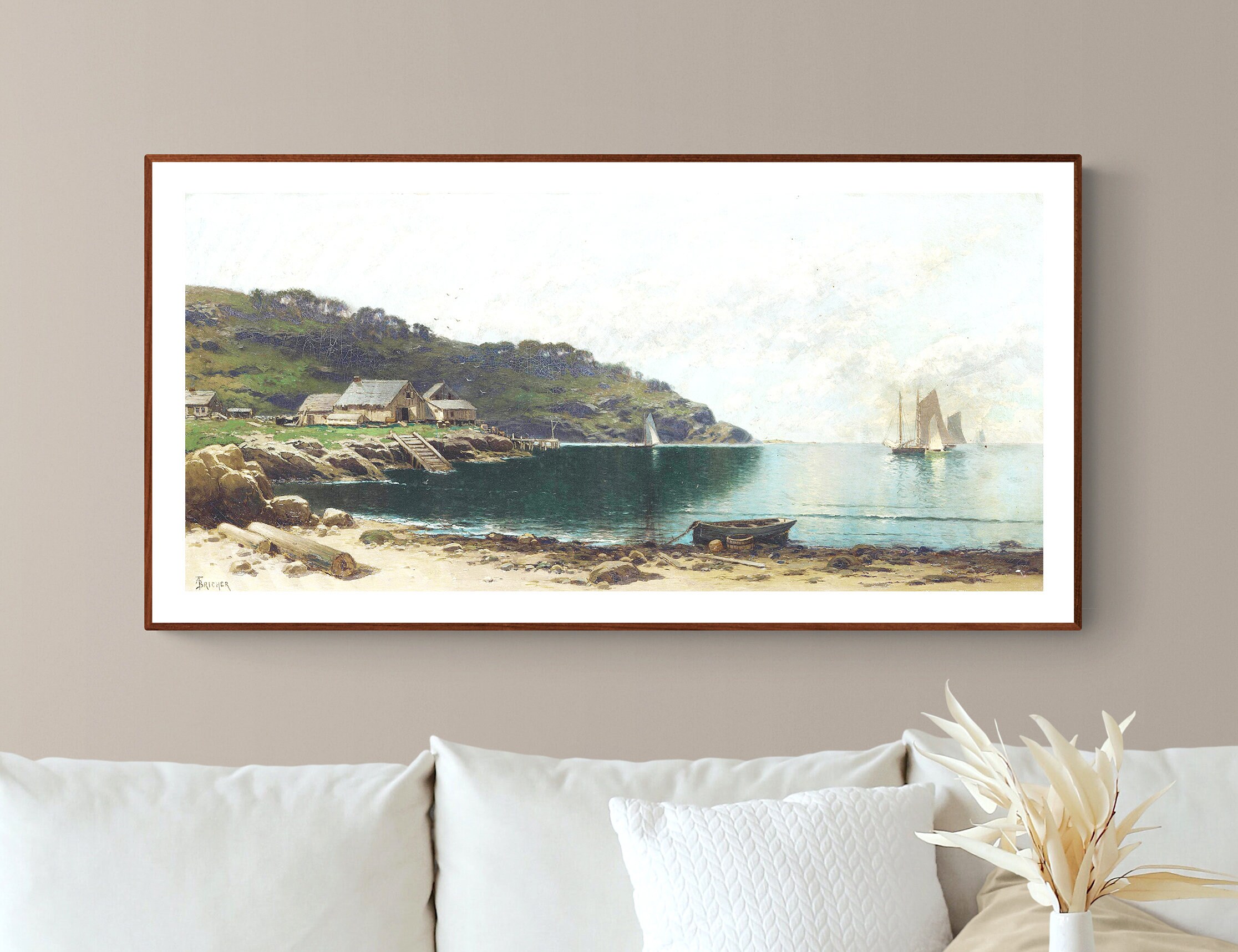 Printed on high quality paper, cotton canvas or adhesive sticker paper. A high quality reproduction of painting by Alfred Thompson Bricher. Professional packaging for safe shipping. Natural white border will be added to the image for mounting and framing.
