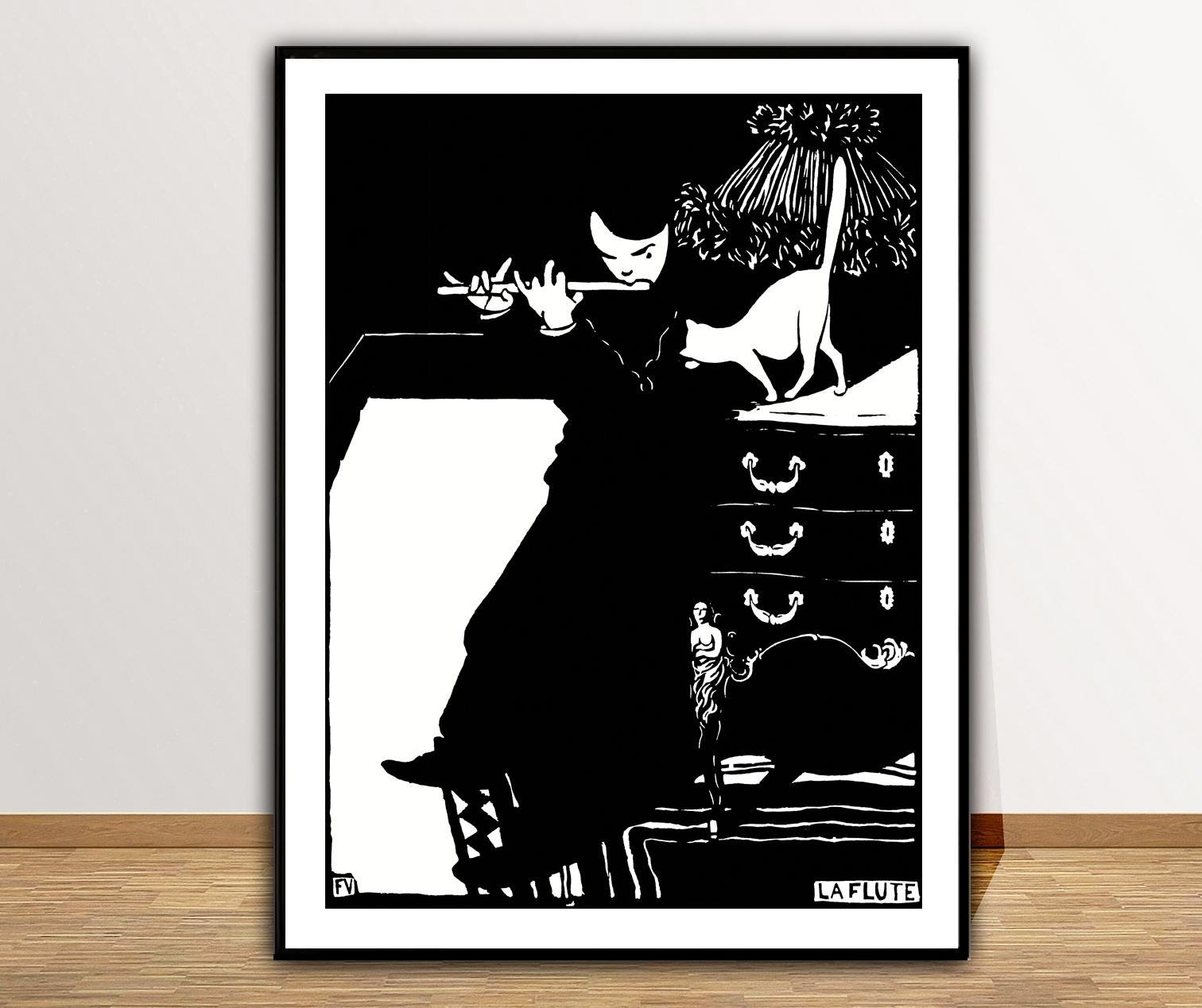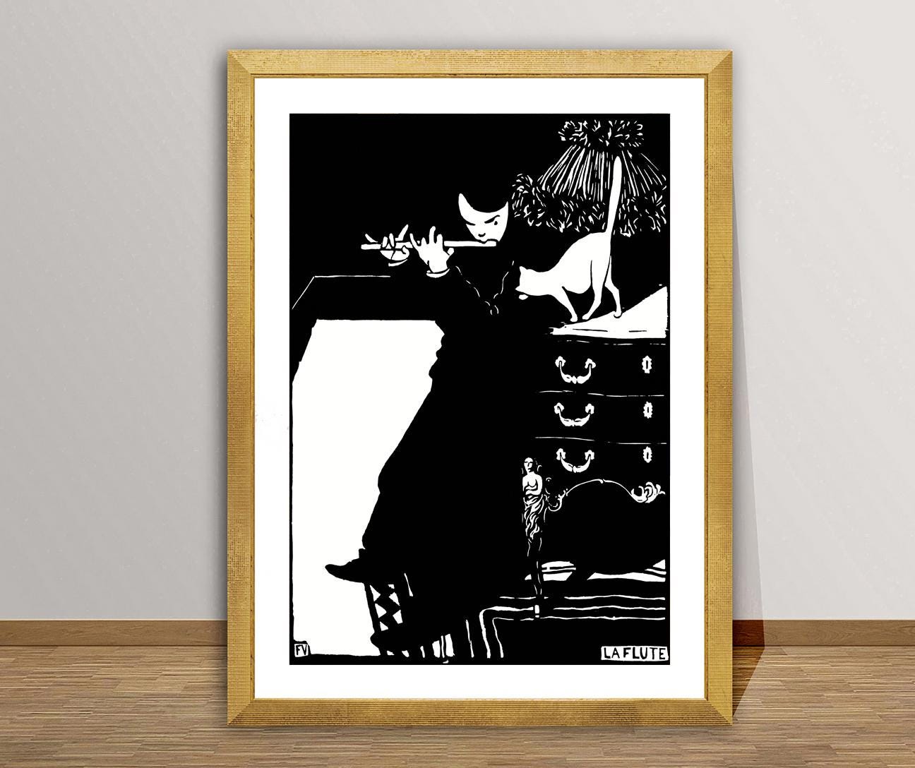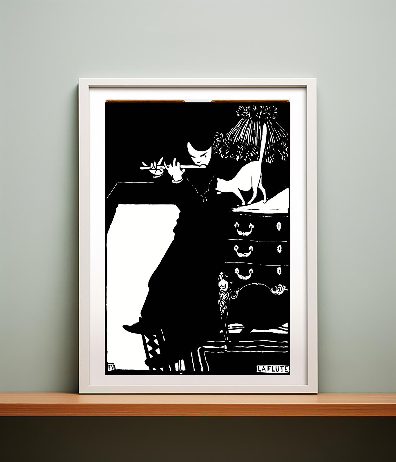 La Flute Fine Art Print by Felix Vallotton: Black and White Musical Artwork