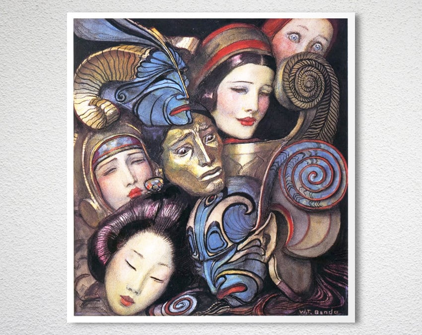 Wladyslaw Benda Allegory Art Print: Vintage Masks Poster or Canvas