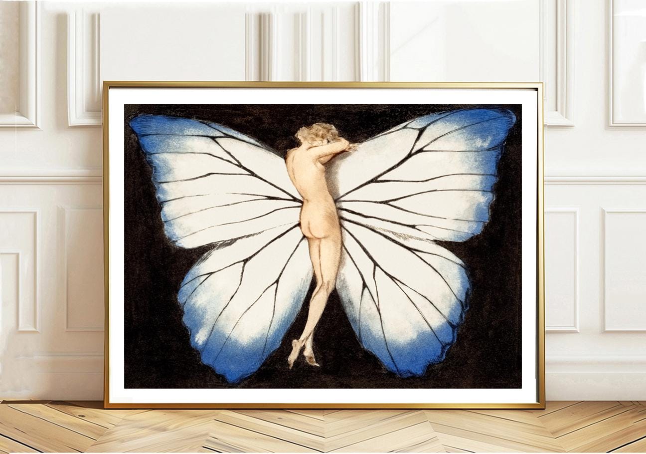 Woman in Wings by Louis Icart Fine Art Print - Poster Paper or Canvas Print / Gift for Fantasy Lovers / Dreamy Wall Decor