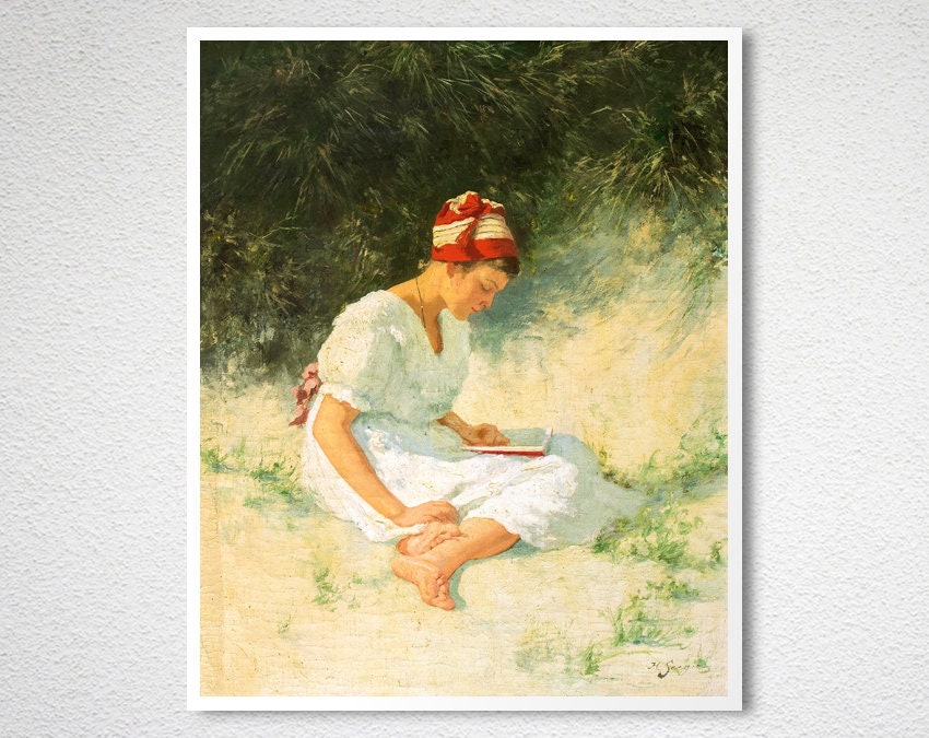 Reading in the Dunes by Hermann Seeger Fine Art Print - Poster Paper or Canvas Print / Wall Decor