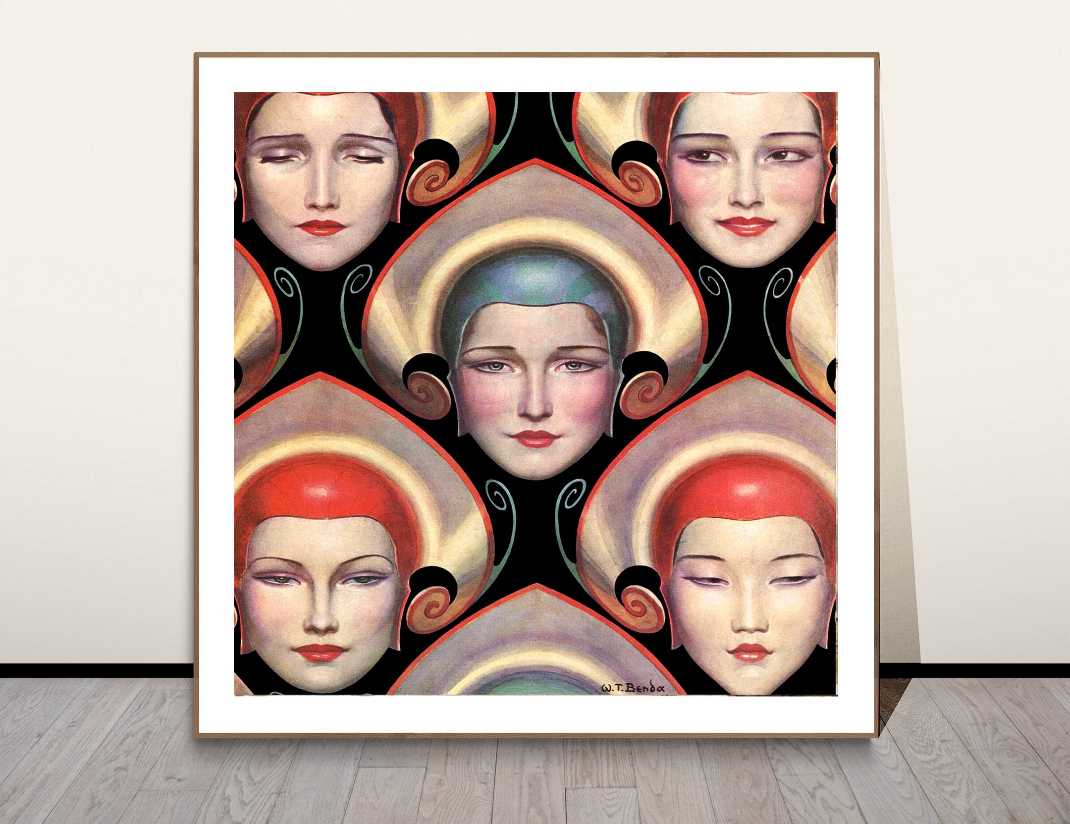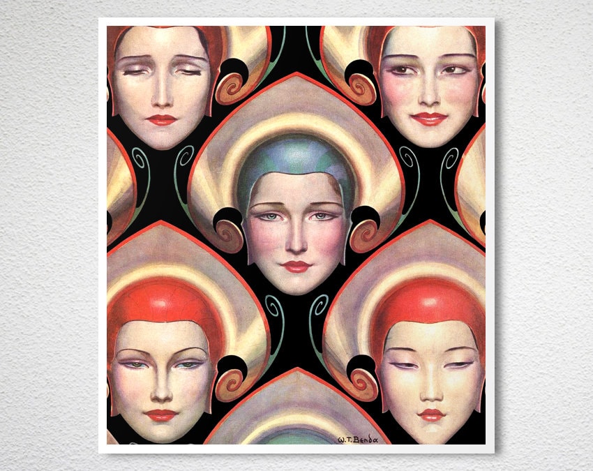 Female Heads by Wladyslaw Theodor Benda Fine Art Print - Poster Paper or Canvas Print / Gift Idea / Wall Decor