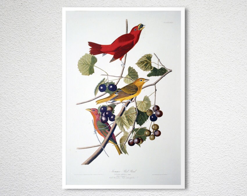 Summer Red Bird by John James Audubon Fine Art Print - Poster Paper or Canvas Print / Gift Idea