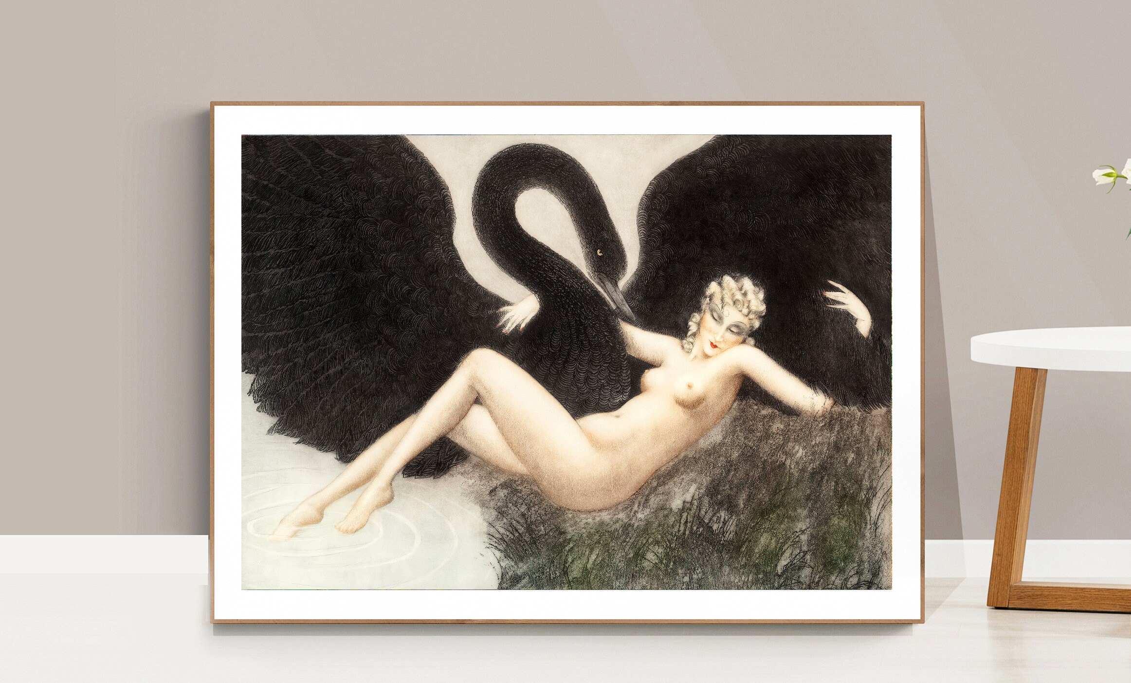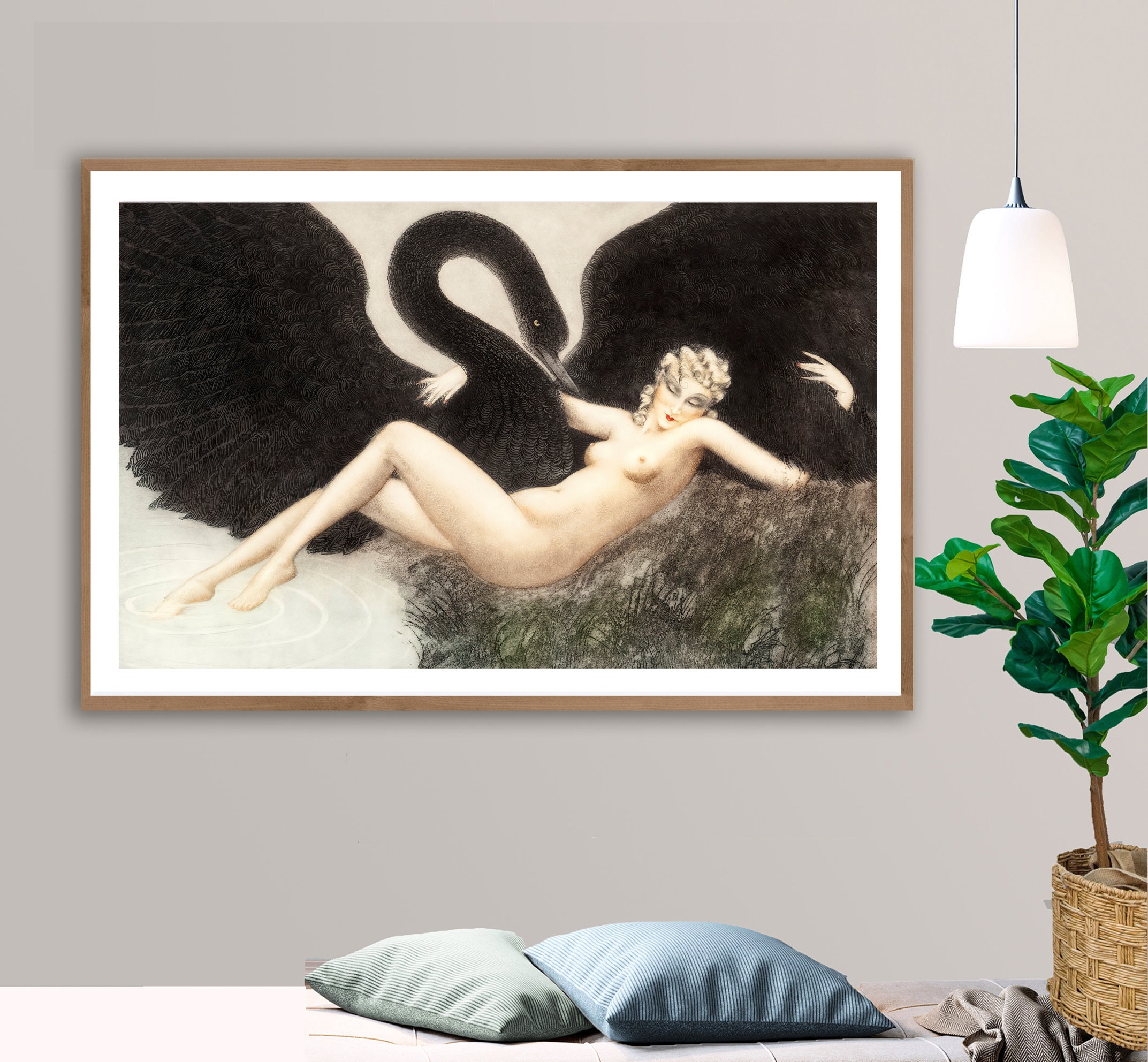 Leda and the Swan Art Print by Louis Icart - Vintage Wall Decor