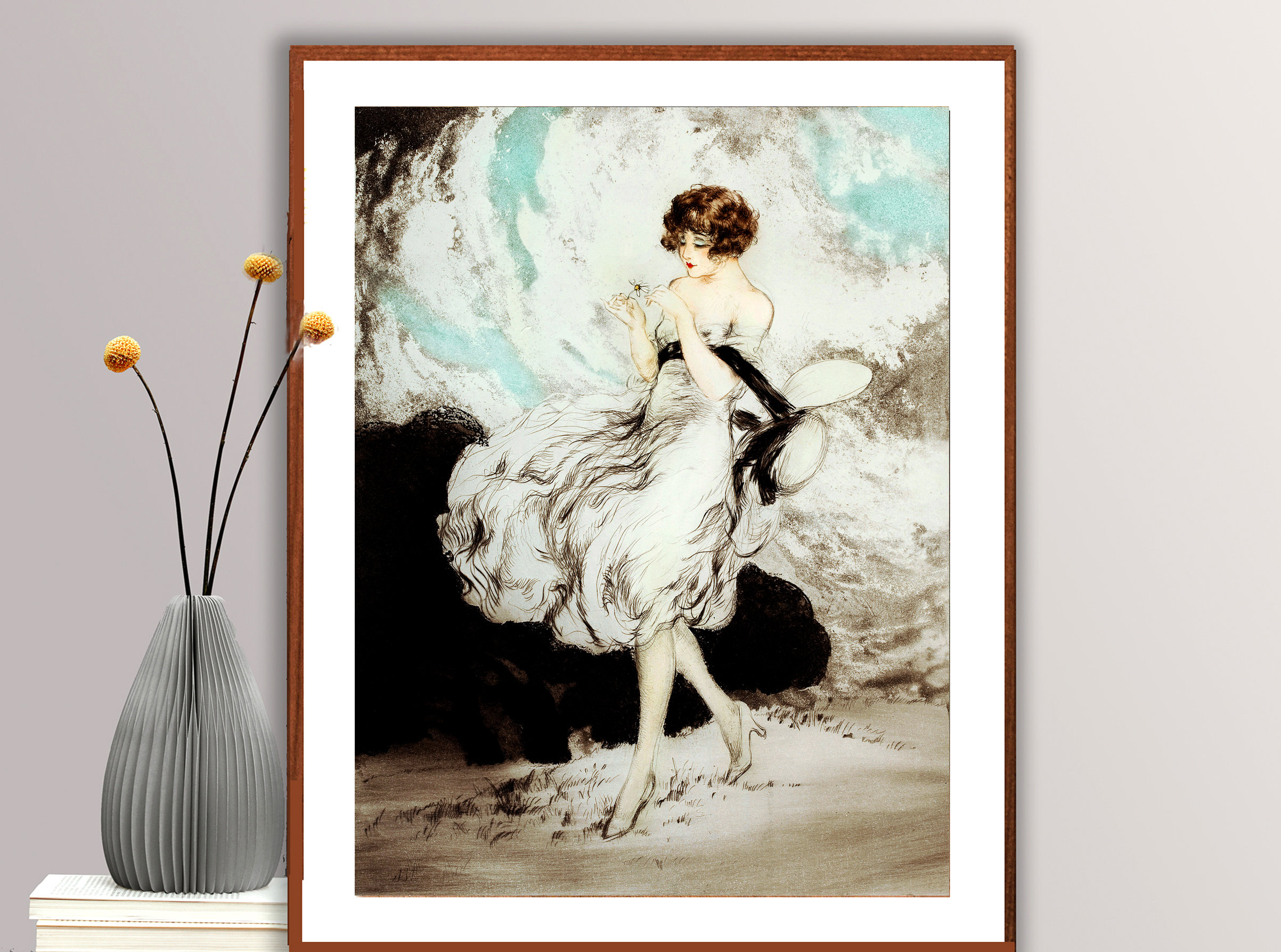 Lady with a Daisy by Louis Icart Fine Art Print - Poster Paper or Canvas Print / Gift Idea / Wall Decor