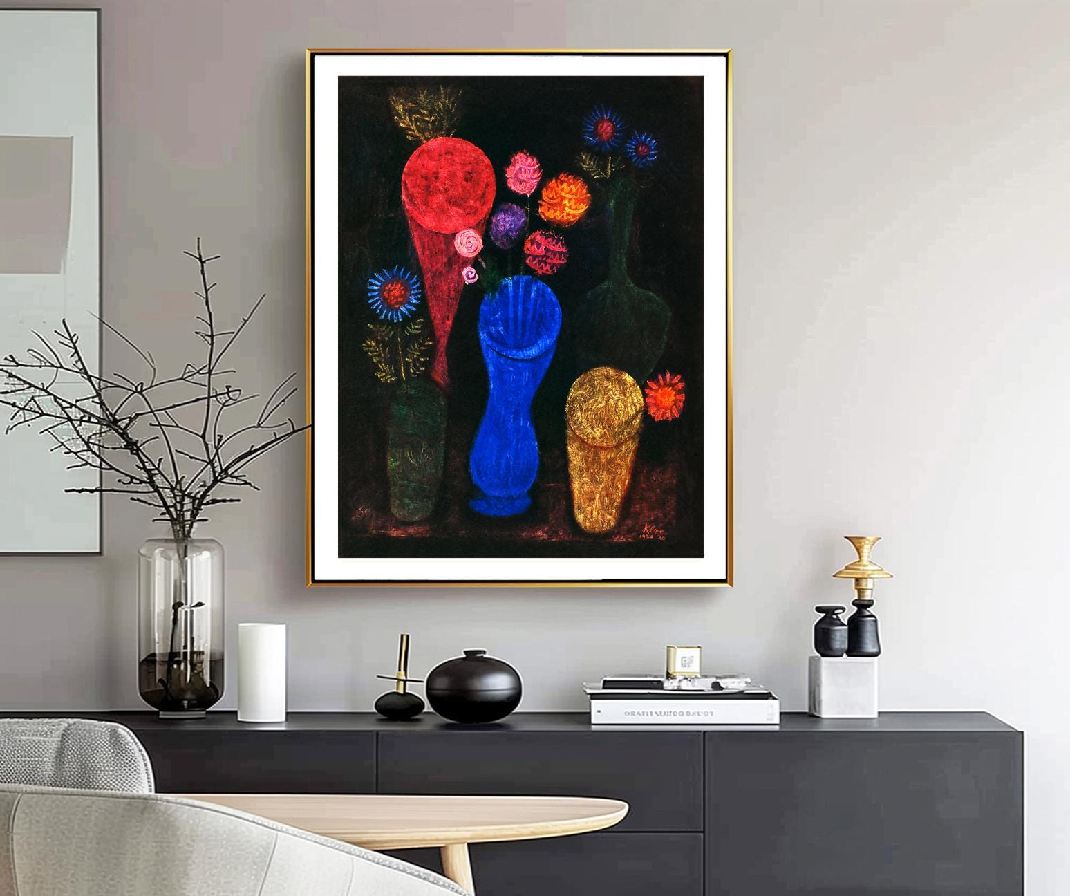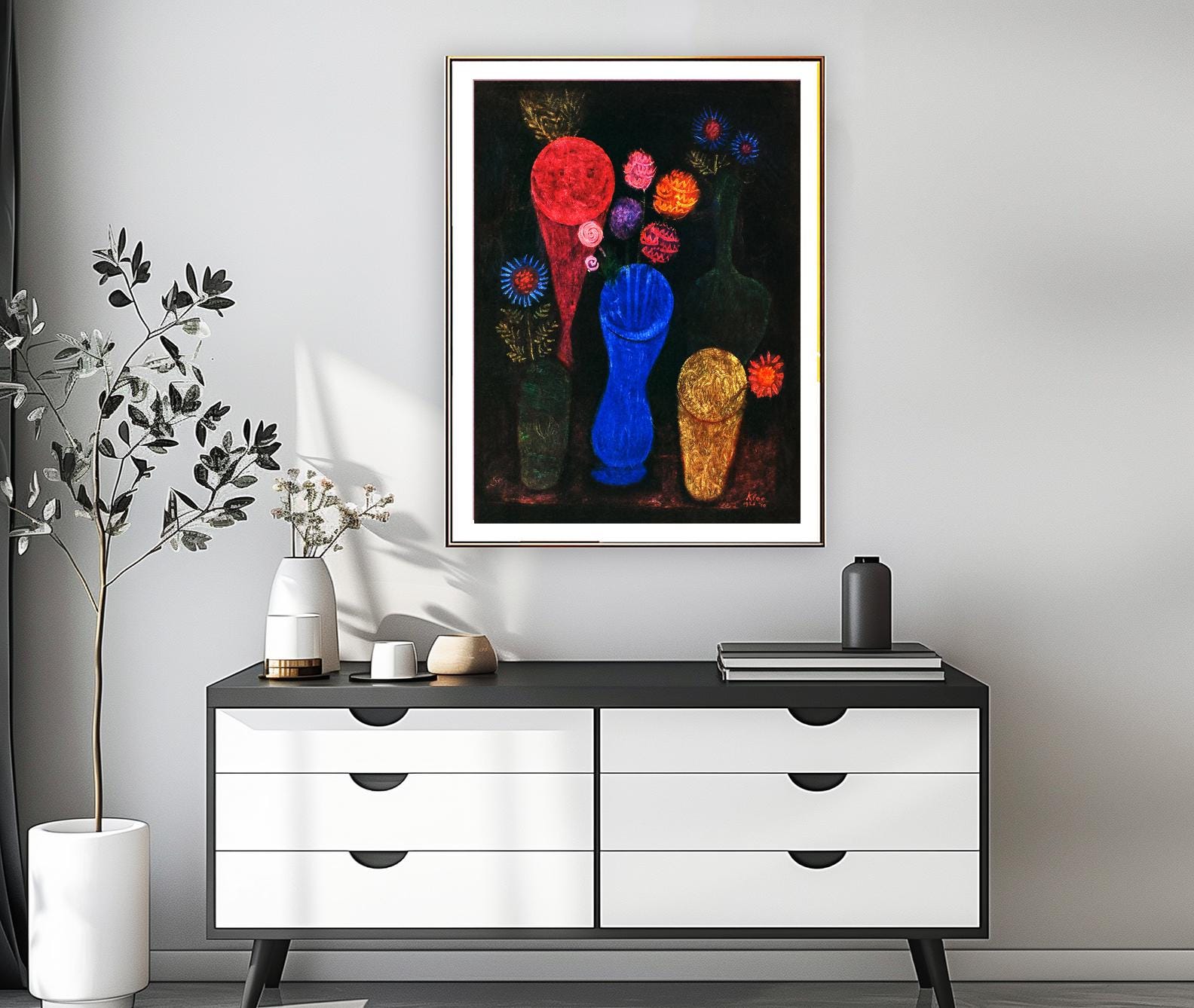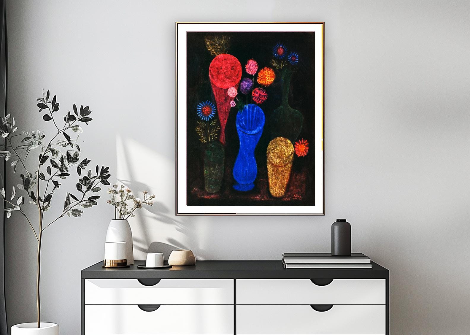 Flowers in Glasses by Paul Klee Fine Art Print - Poster Paper and Canva Print / Gift Idea /Wall Decor