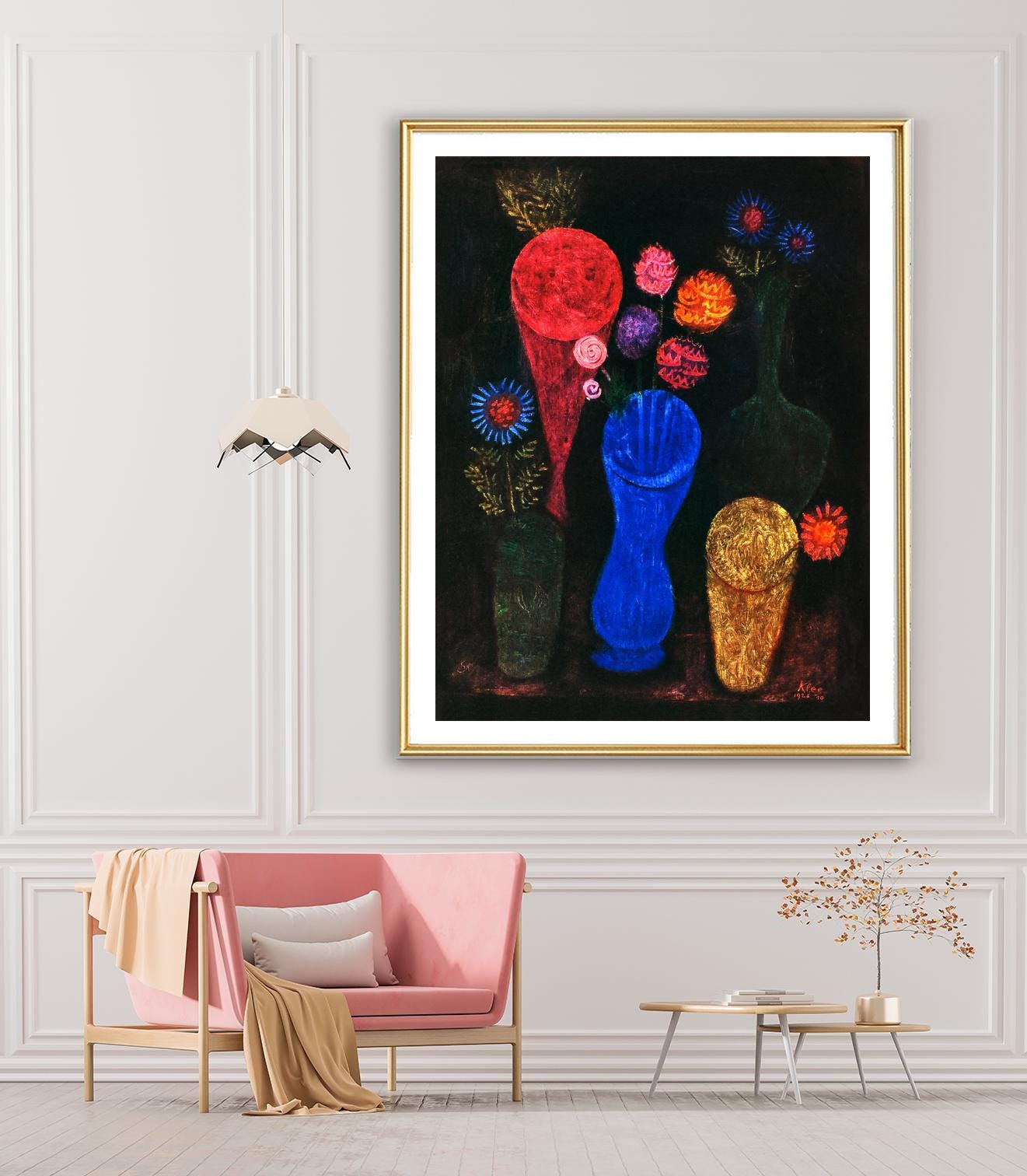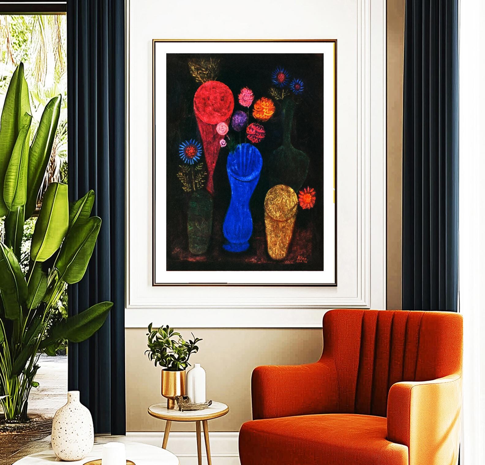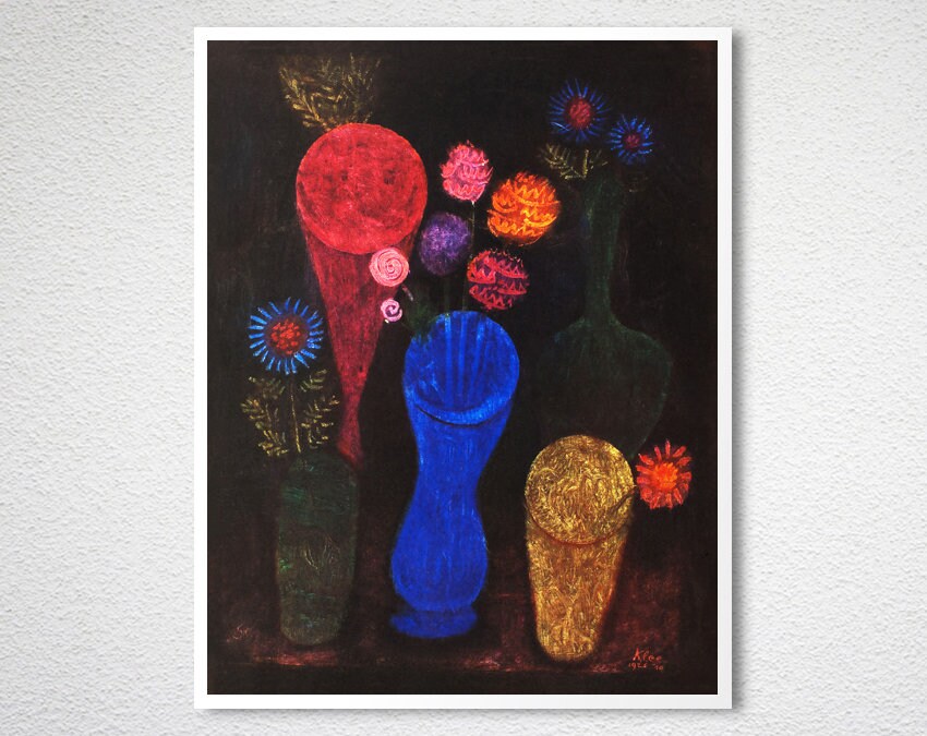 Flowers in Glasses by Paul Klee Fine Art Print - Poster Paper and Canva Print / Gift Idea /Wall Decor