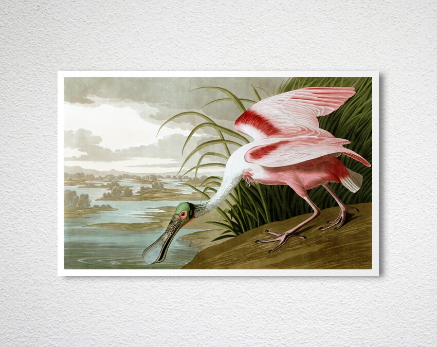 Roseate Spoonbill by John James Audubon Fine Art Print - Poster Paper or Canvas Print / Gift Idea