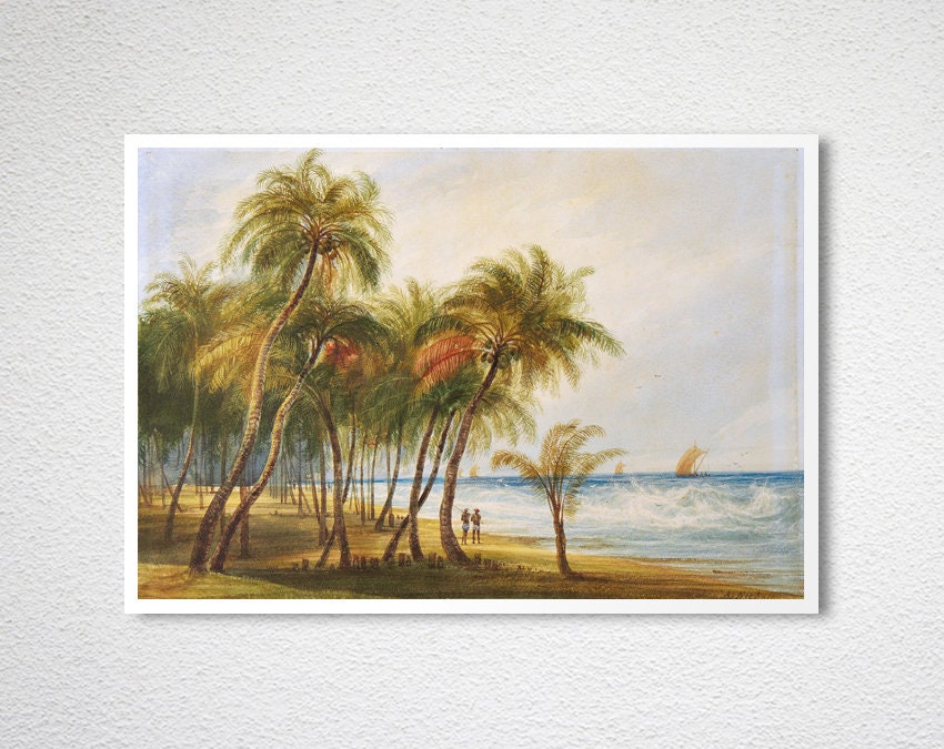 A Beach in Seylan by Andrew Nicholl Fine Art Print - Poster Paper or Canvas Print / Gift Idea