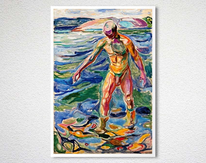 Bathing Man by Edvard Munch Fine Art Print, Symbolist Poster, Expressionist Art, Nude Art