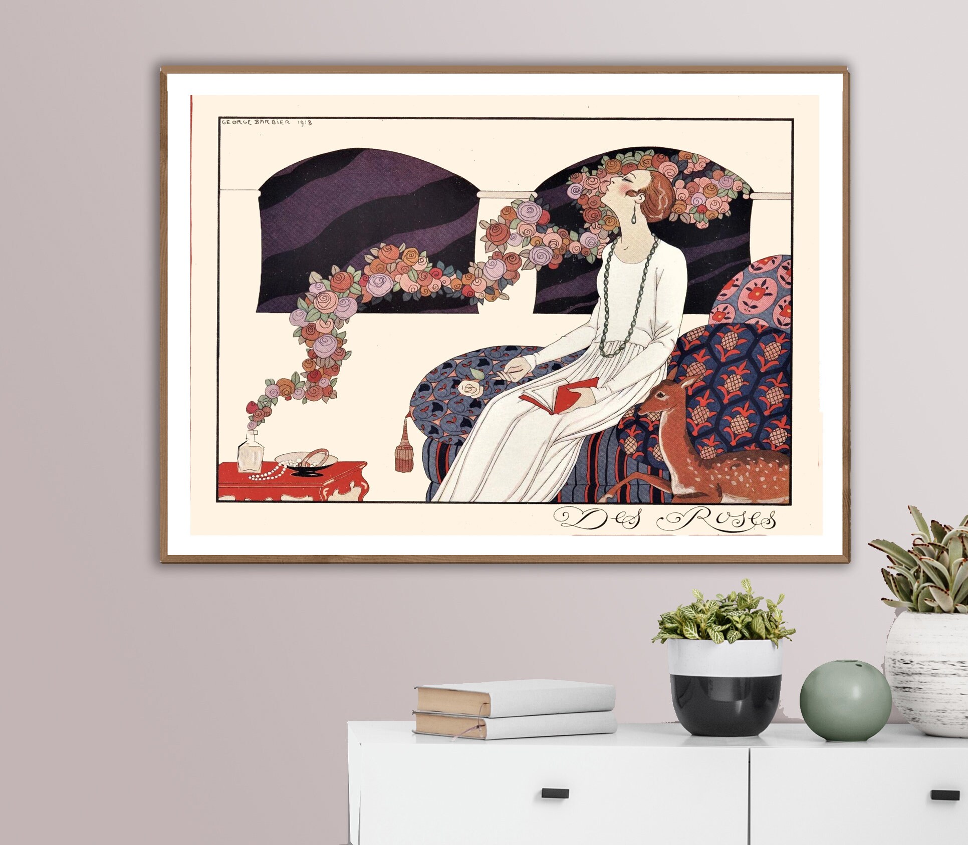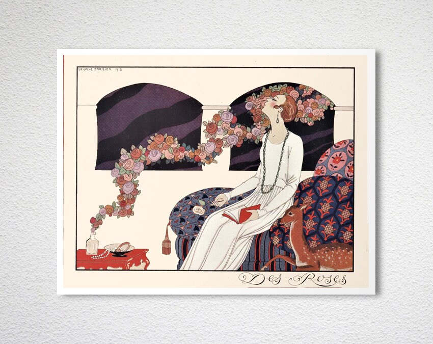 Des Roses by George Barbier Vintage Poster - Poster Paper or Canvas Print / Wall Decor