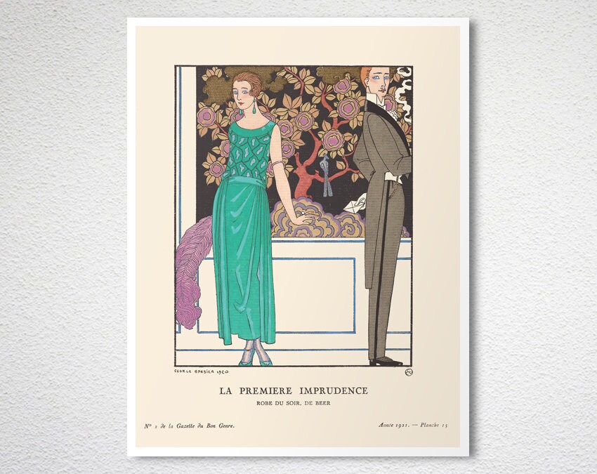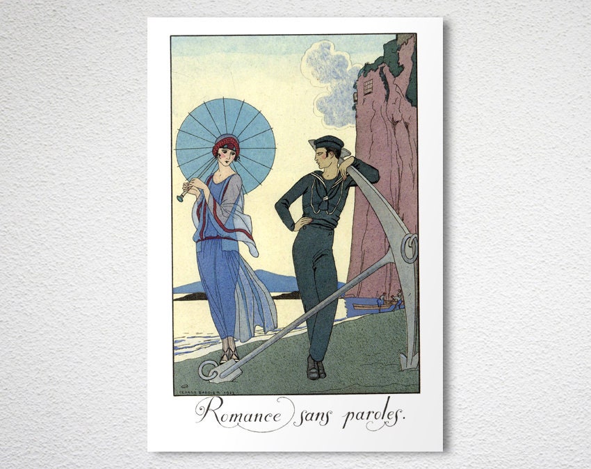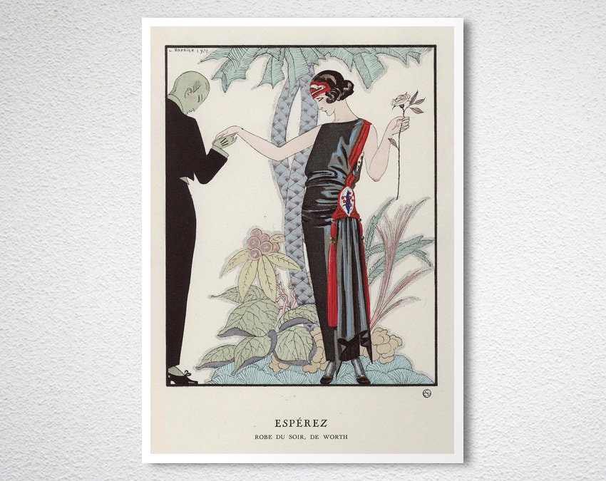 GICLEE printed on high quality paper, cotton canvas or adhesive sticker paper. A high quality reproduction of painting by George Barbier. Professional packaging for safe shipping. Natural white border will be added to the image for mounting and framing.