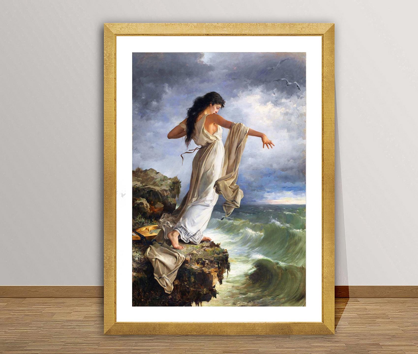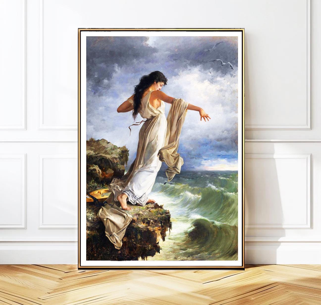 Death of Sappho by Miguel Carbonell Selva Fine Art Print - Fantasy Poster, Figurative Painting