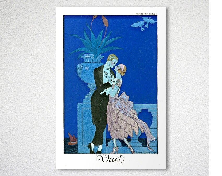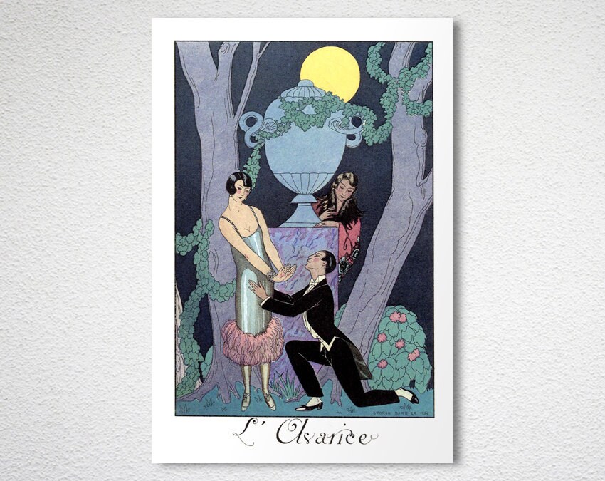 GICLEE printed on high quality paper, cotton canvas or adhesive sticker paper. A high quality reproduction of painting by George Barbier. Professional packaging for safe shipping. Natural white border will be added to the image for mounting and framing.