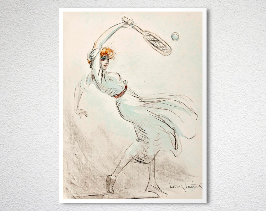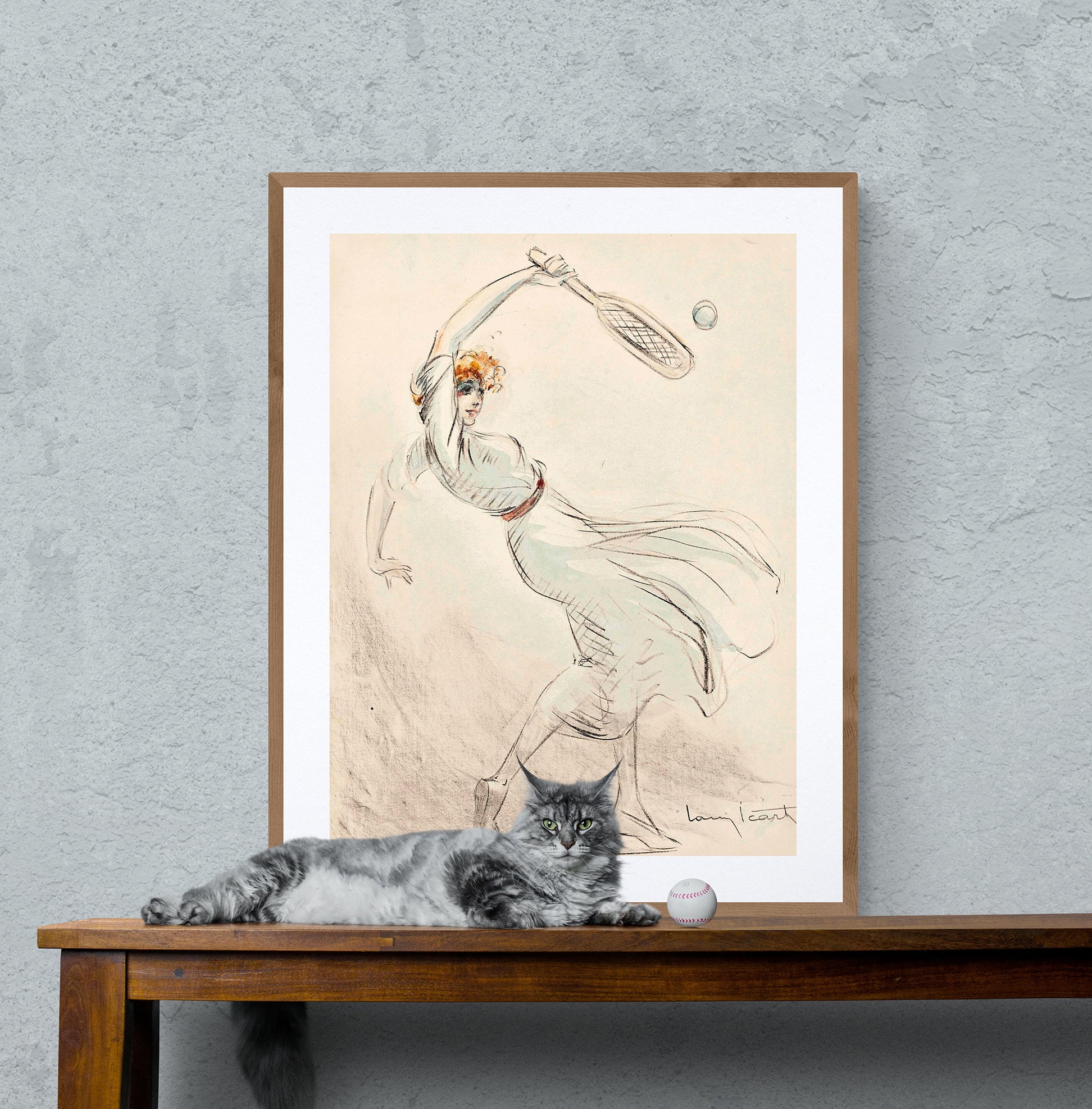 The Tennis Player Vintage Tennis Poster by Louis Icart - Poster Paper or Canvas Print / Gift Idea / Wall Decor