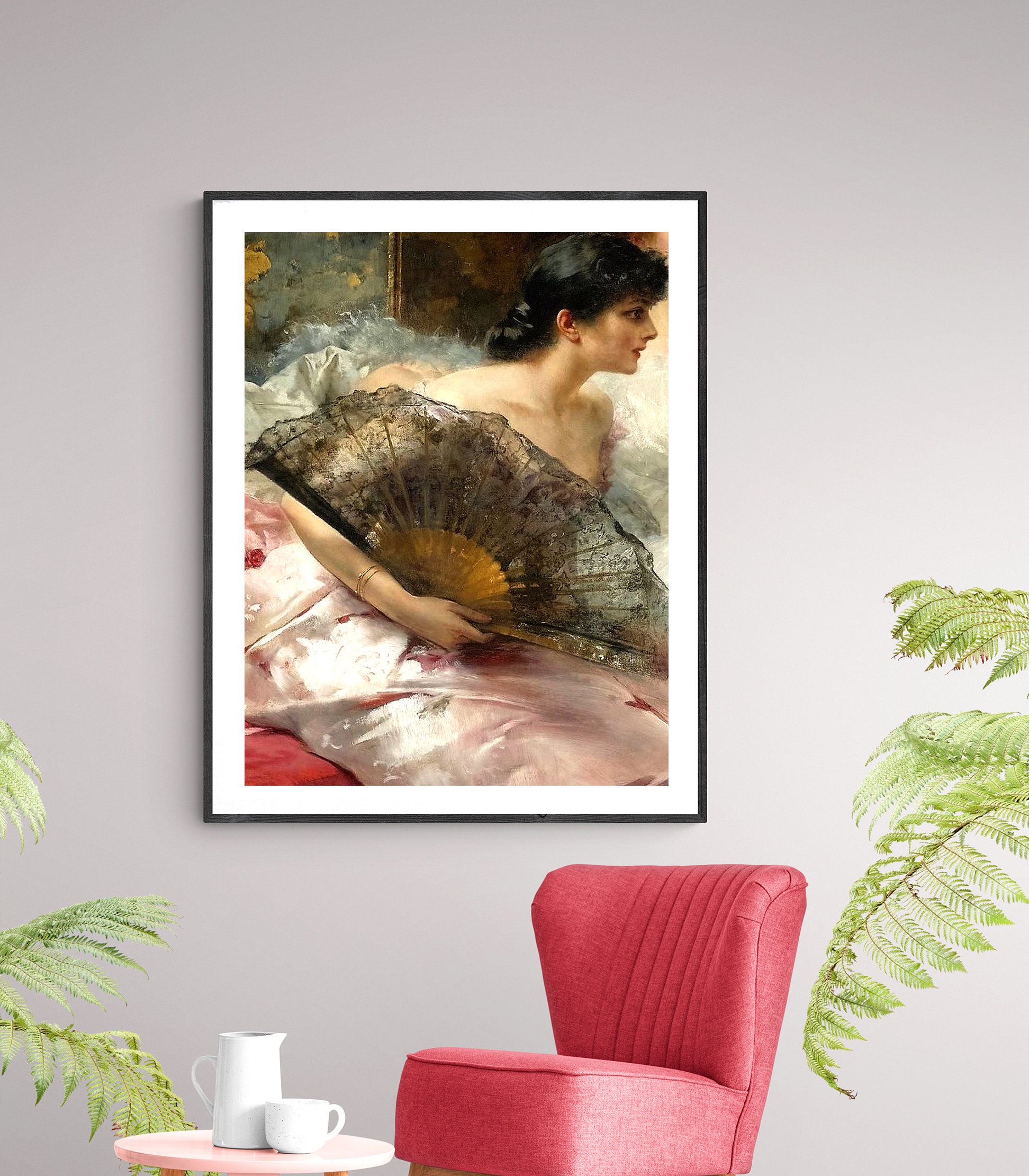 Conrad Kiesel 'After the Ball' Fine Art Print - Elegant Woman with Fan