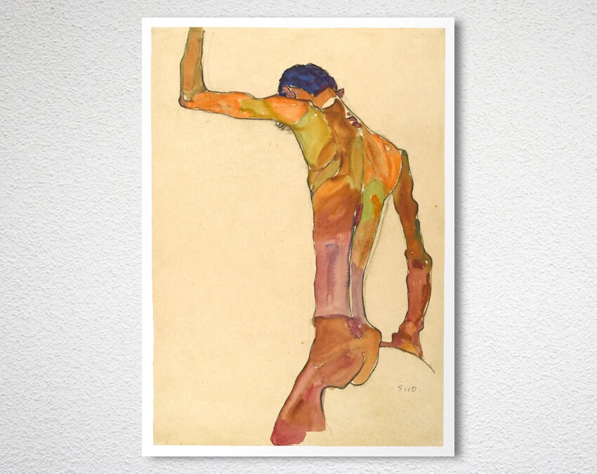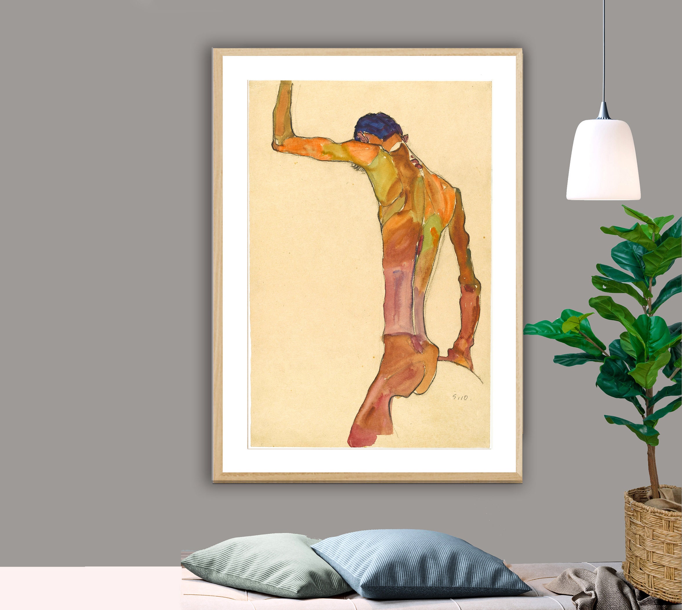 Standing Male Nude with Arm Raised, Back View by Egon Schiele by Fine Art Print - Poster Paper or Canvas Print / Gift Idea